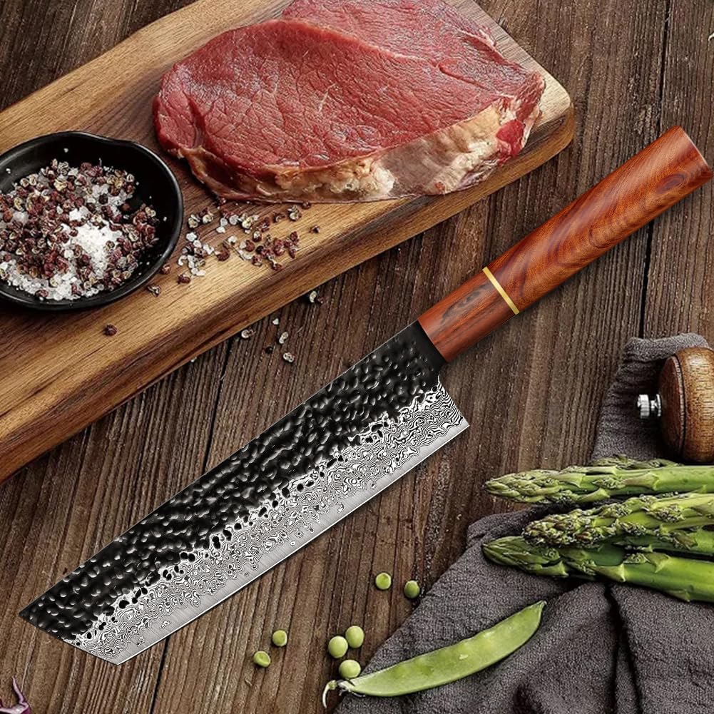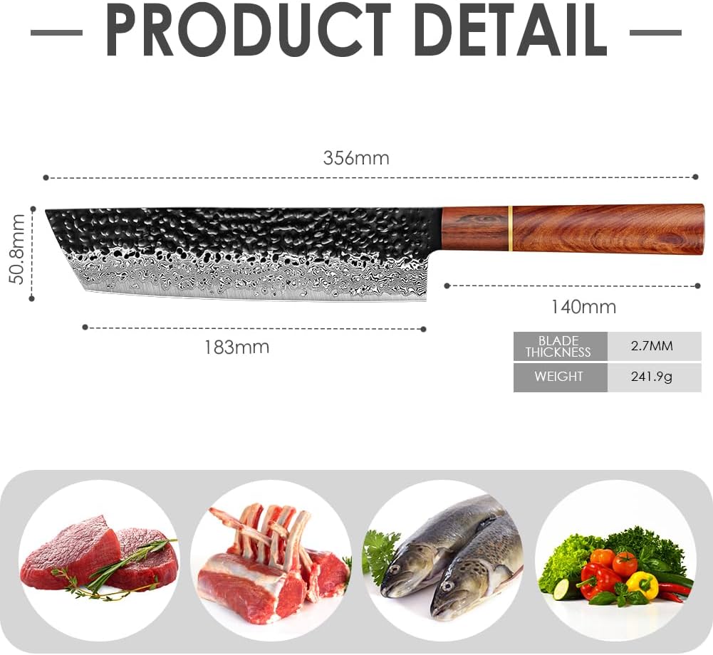 - 【MULTIFUNKTIONALES DAMASTMESSER】Das Damast Nakiri Messer kann Ihre Zufriedenstellung täglichen Küchenbedürfnisse wie Hacken, Zerkleinern, Schneiden, Entbeinen, Schneiden von Fleisch, Gemüse und Obst(Aber nicht empfohlen für Schneiden von grossen