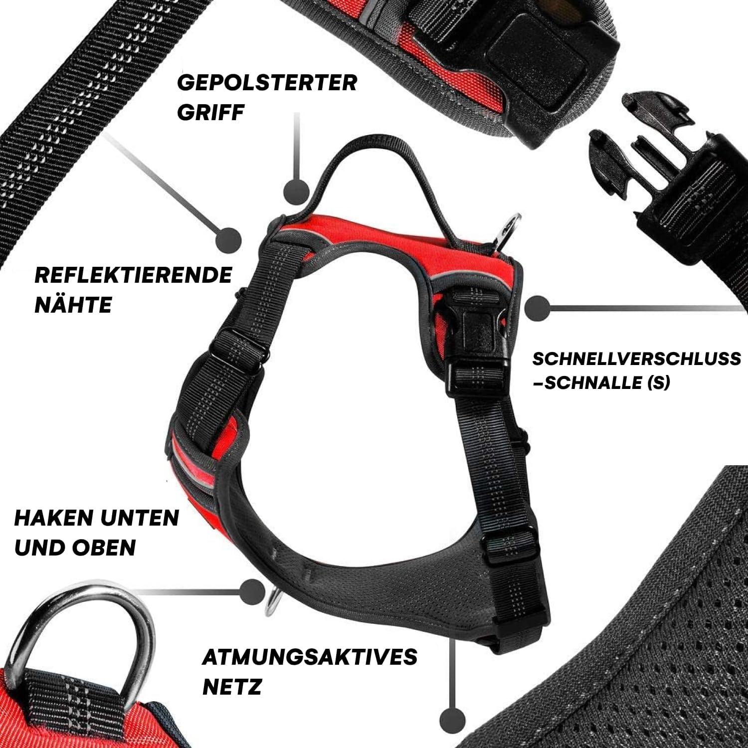 - Komfort & Sichtbarkeit: Unser atmungsaktives Hundegeschirr mit weicher Polsterung sorgt für Komfort. Der reflektierende Stoff erhöht die Sichtbarkeit bei Spaziergängen in der Dämmerung.