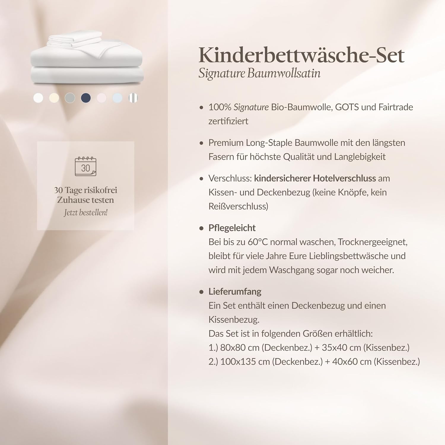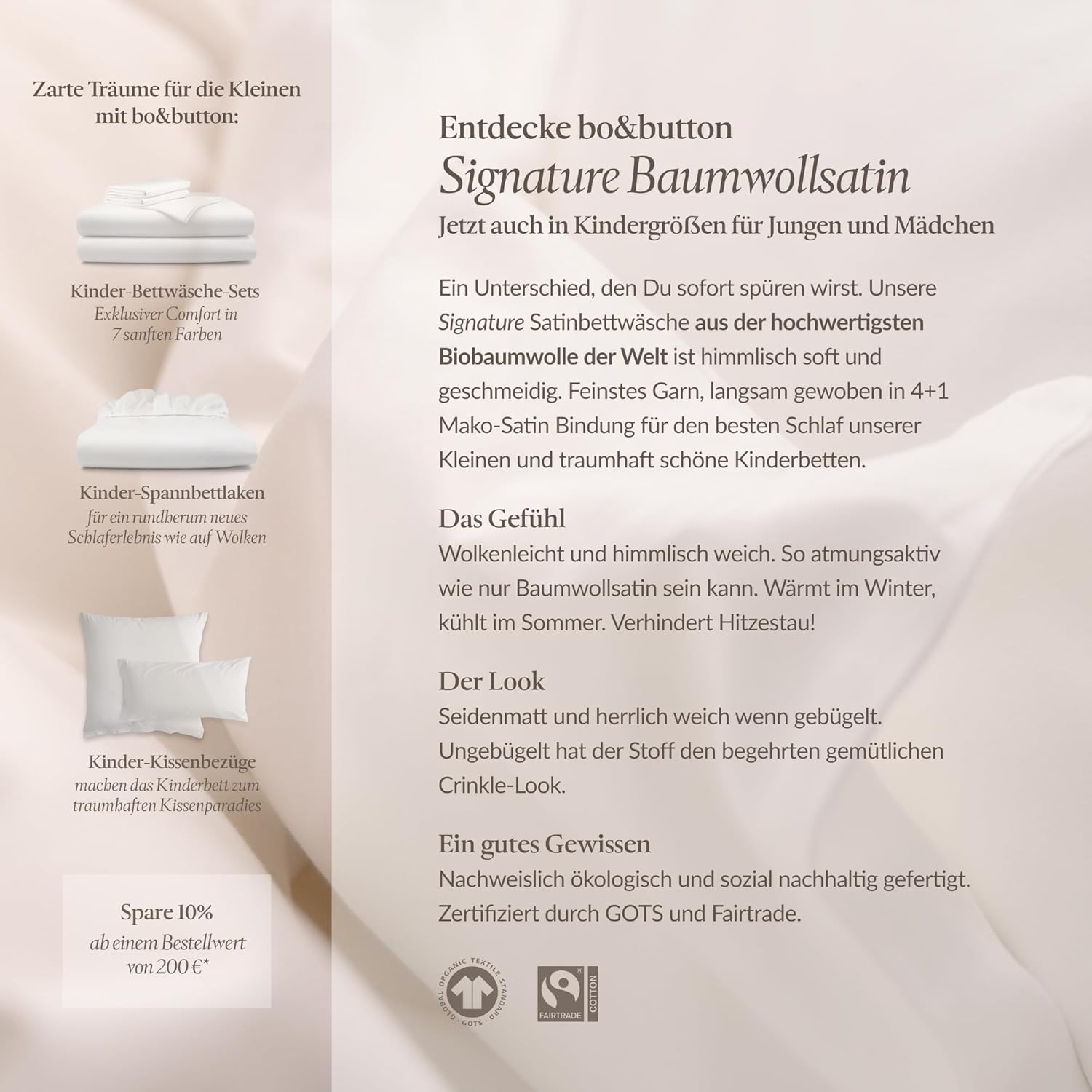 - 🤗 Willkommen bei bo&button! Nach unzähligen Anfragen endlich da: Unsere super hochwertige Satinbettwäsche aus Biobaumwolle (Long-Staple 300) gibt's jetzt auch in Kindergrösse für Jungen & Mädchen.