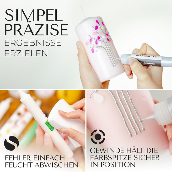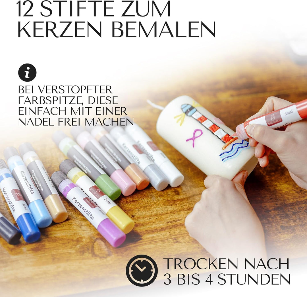 - 🎨 VIELSEITIGE KERZENGESTALTUNG - Mit unseren Kerzenstiften verwandelst du jede Kerze in ein Kunstwerk. Ideal für das Bemalen von Taufkerzen oder das Erstellen einzigartiger Weihnachtsdekorationen!
