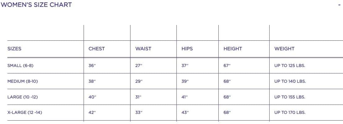 - Grösse Damen XL (40-42): Brustumfang 106,7 cm, Taille 83,8 cm, Hüfte 109,2 cm, Höhe 68 bis zu 77 kg
