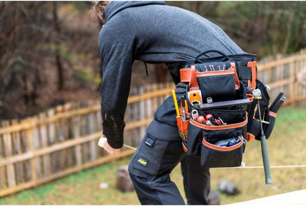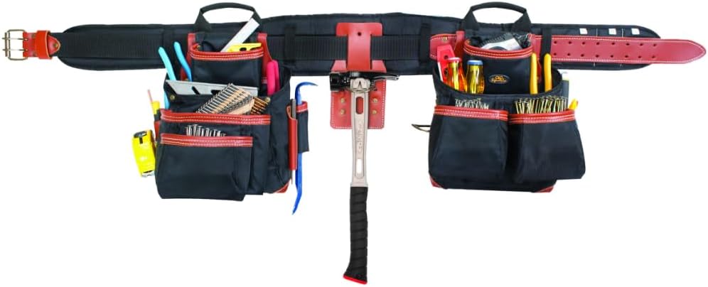 - 27 Taschen-Werkzeuggürtel: Dieser Werkzeuggürtel verfügt über 17 kleinere Taschen für Zangen und kleinere Werkzeuge und 8 umgekehrte Haupt-Nagel- und Werkzeugtaschen. Dieser Werkzeuggürtel hat insgesamt 27 Taschen und Hüllen für eine Vielzahl von