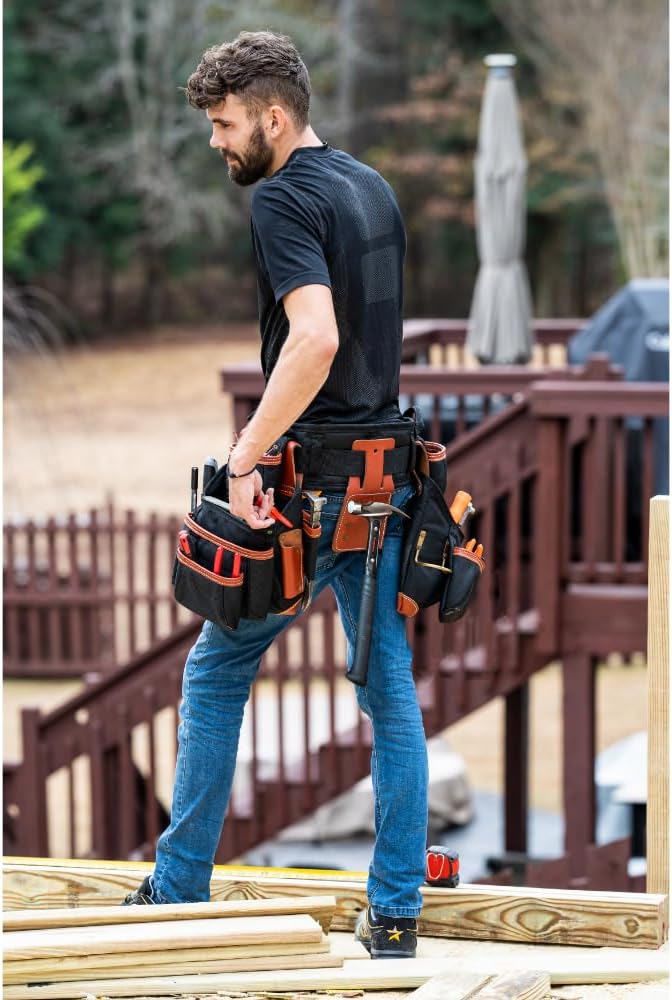 - Bequemer Werkzeuggürtel: Dieser Werkzeuggürtel hat einen 12,7 cm breiten, gepolsterten Gürtel mit Doppelzunge Stahlrollschnalle. Passend für Taillengrössen: 73,7 cm – 116,8 cm.