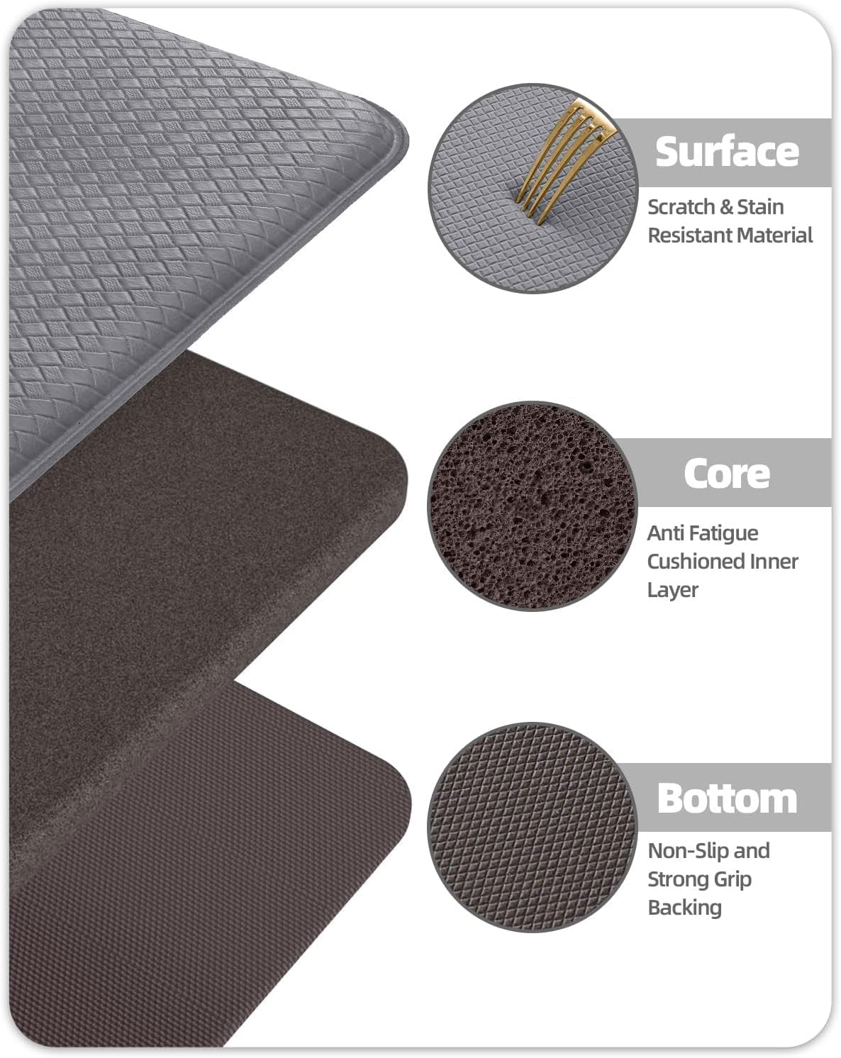 - Rutschfest & Schutz:Die Halterung dieser Küchenmatte besteht aus strapazierfähigem PVC mit einer diamantförmigen Anti-Rutsch-Textur, die eine hervorragende Rutschfestigkeit auf Holz-, Fliesen- und Betonböden bietet. Der 10 mm dicke Schwammkern bietet