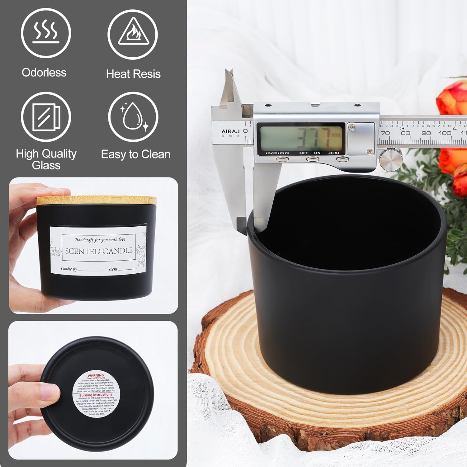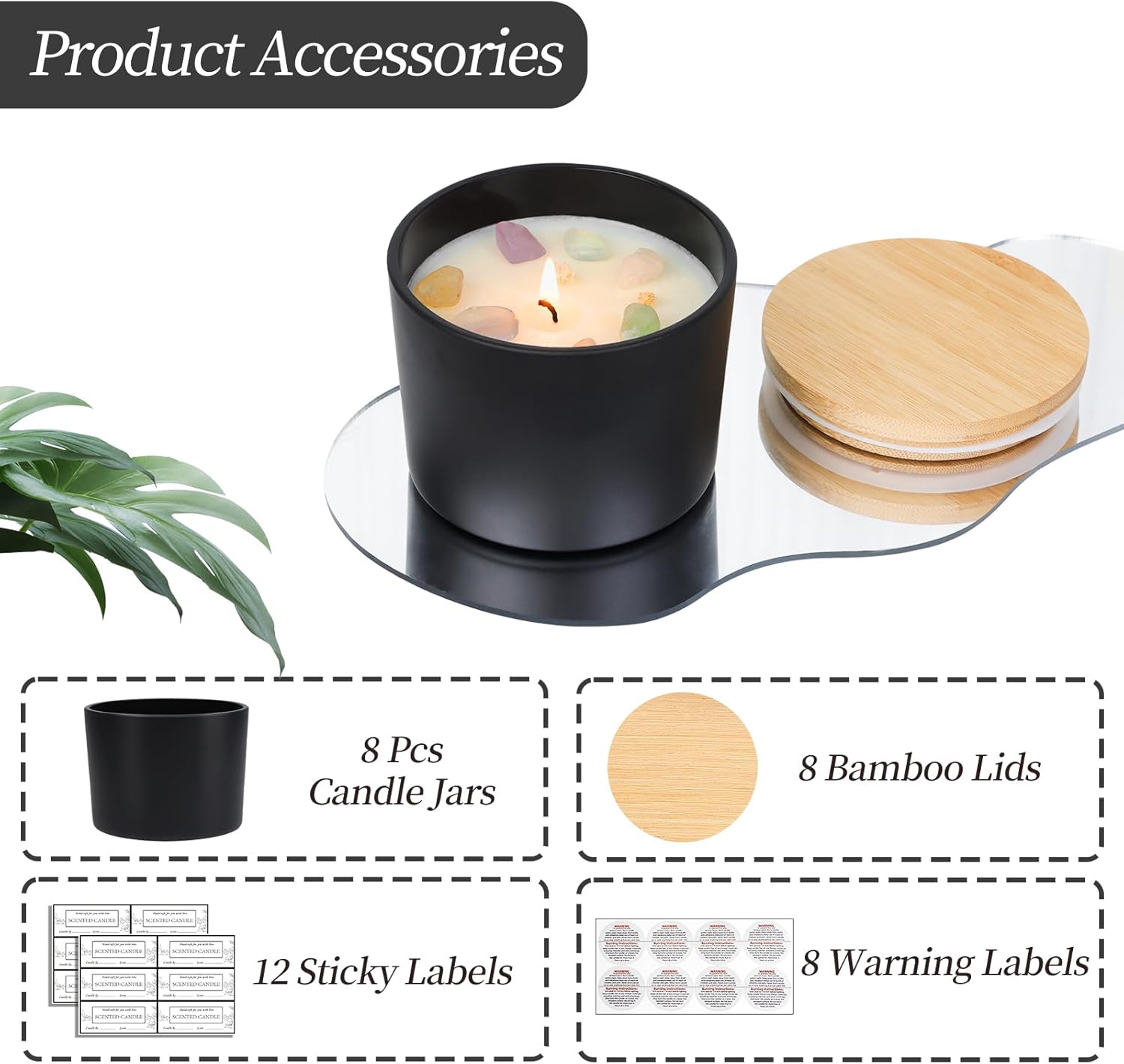 - 【Kaufenswert】 Sie erhalten 8 Stück 340.2 g schwarze Glaskerzengläser mit Bambusdeckel, zusammen mit 12 Klebeetiketten und 8 Warnetiketten. Diese Kerzengläser bestehen aus verbessertem 3,7 mm dickem, hitzebeständigem Glas, das ungiftig,