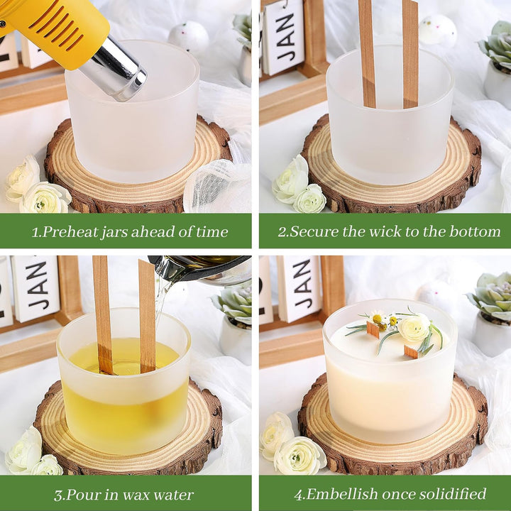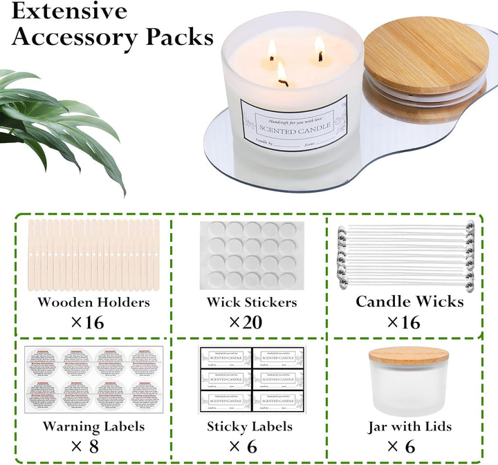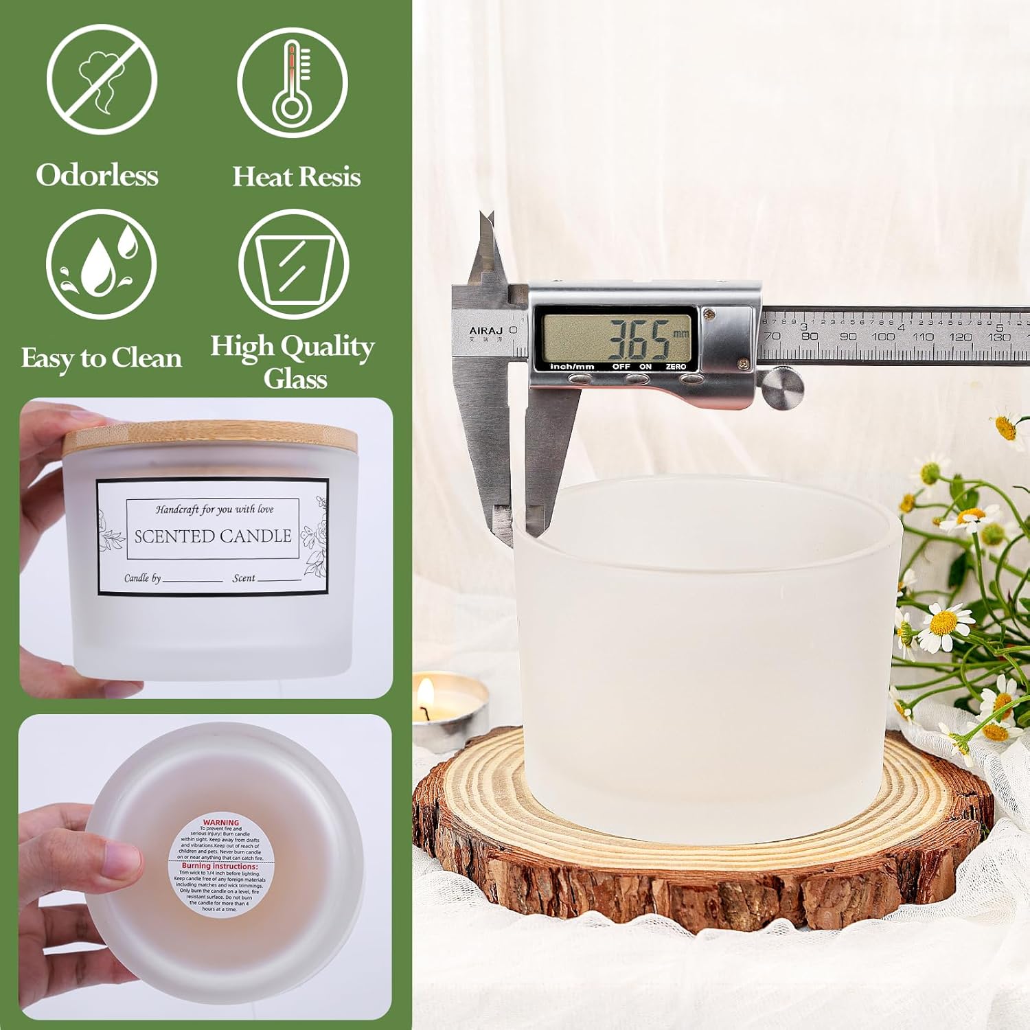 - 【Wertvolles Kerzenherstellungs-Set】: Sie erhalten 6 x 473 ml Milchglas-Kerzengläser mit Bambusdeckel, 20 Dochte, 20 Docht-Aufkleber und 20 Dochthalter. Zusätzlich sind 6 Klebeetiketten und 8 Warnetiketten für Ihre täglichen