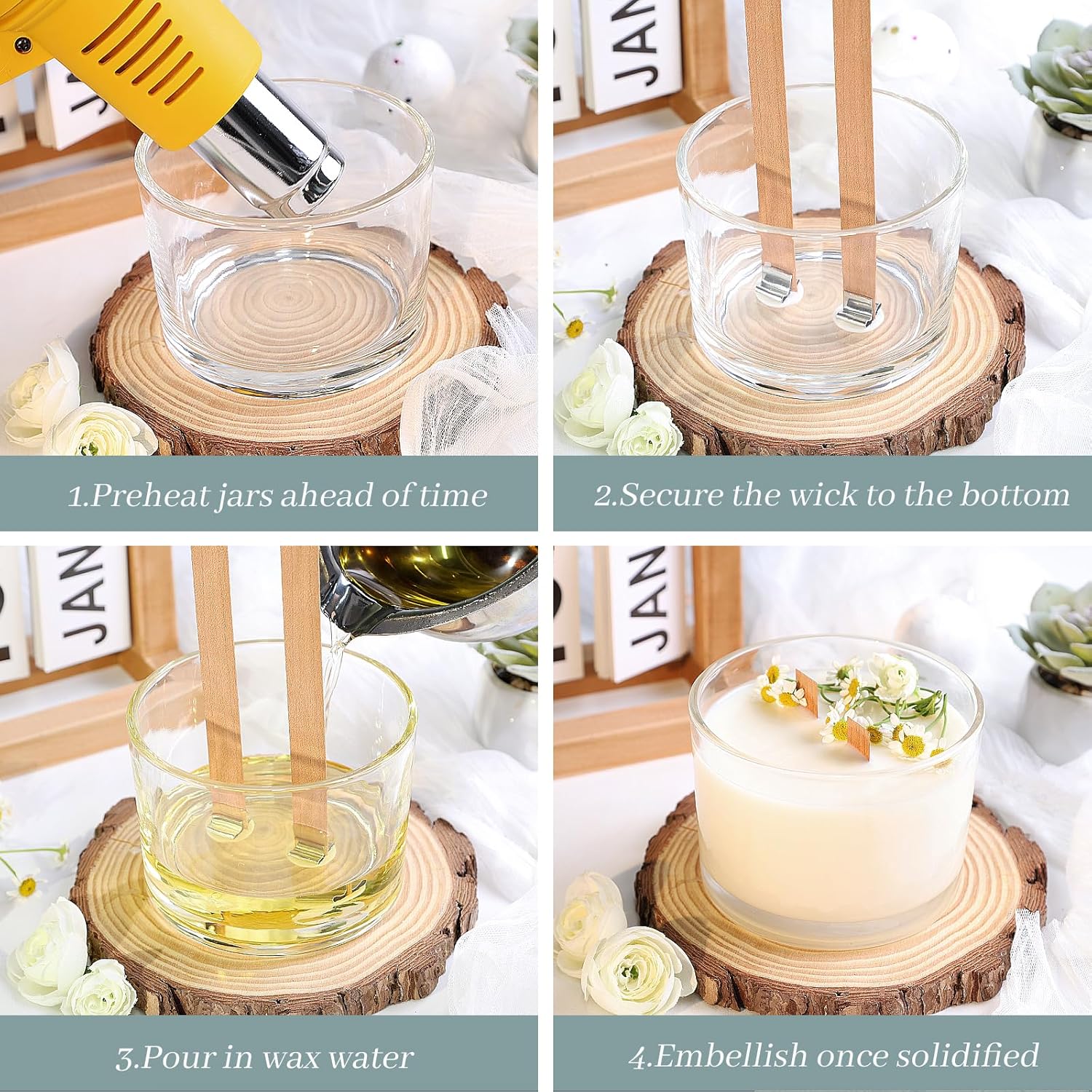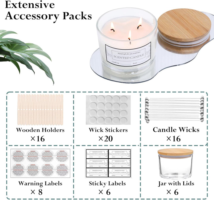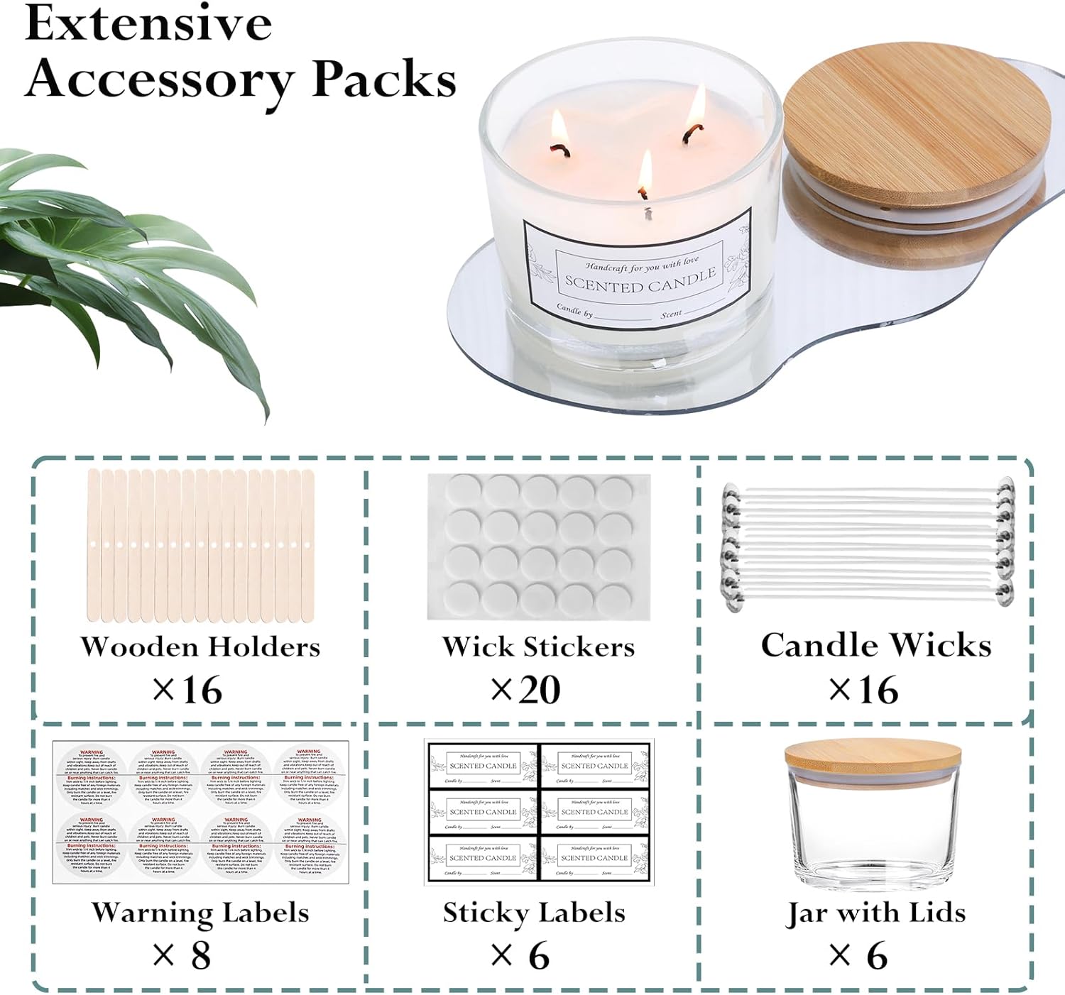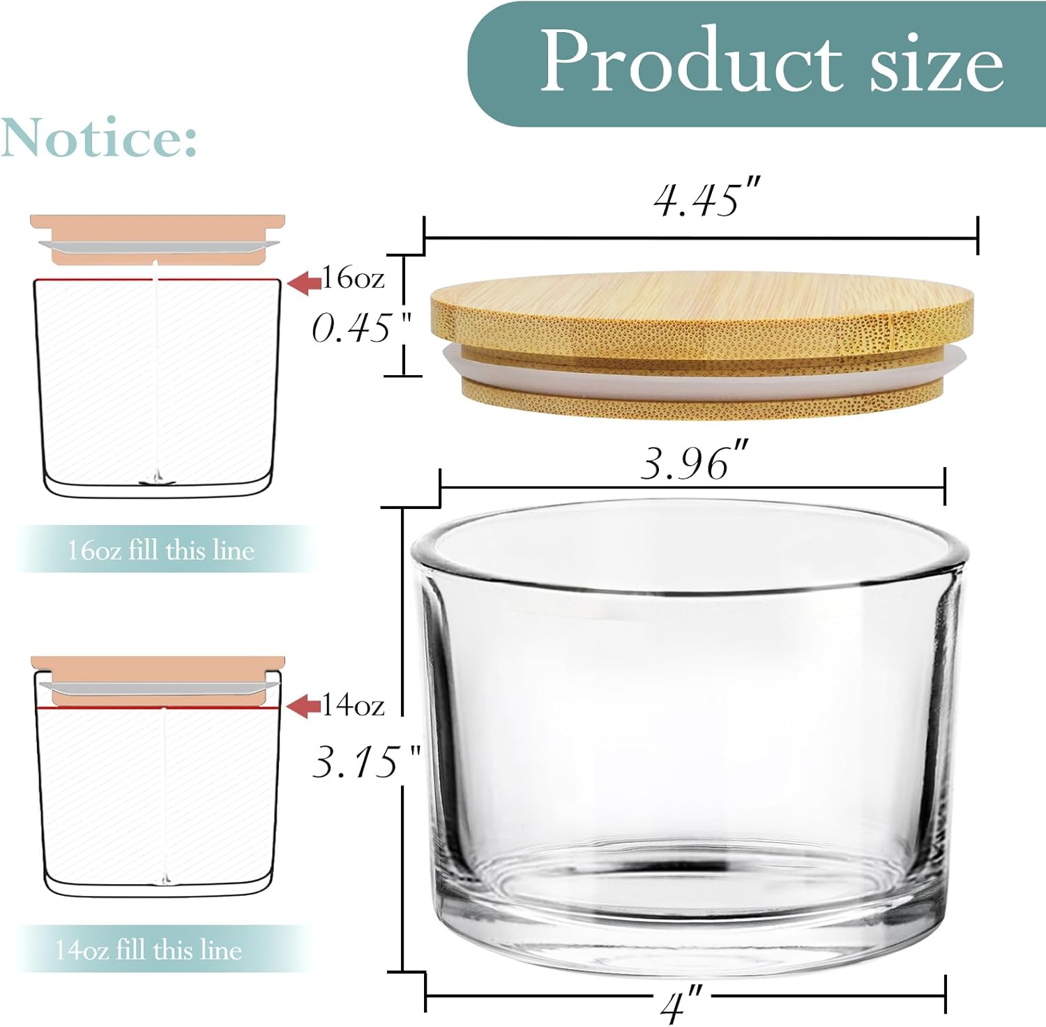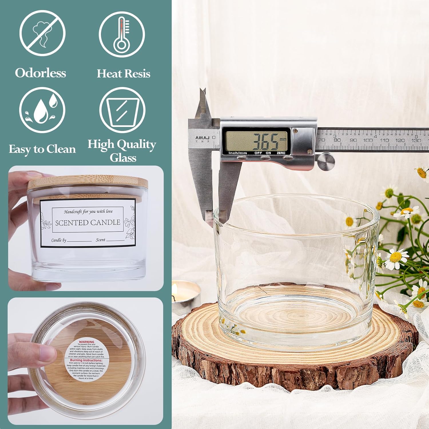 - 【Wertvolles Kerzenherstellungs-Set】: Sie erhalten 6 x 473 ml Klarglas-Kerzengläser mit Bambusdeckel, 20 Dochte, 20 Docht-Aufkleber und 20 Dochthalter. Zusätzlich sind 6 Klebeetiketten und 8 Warnetiketten für Ihre täglichen Kerzenherstellung