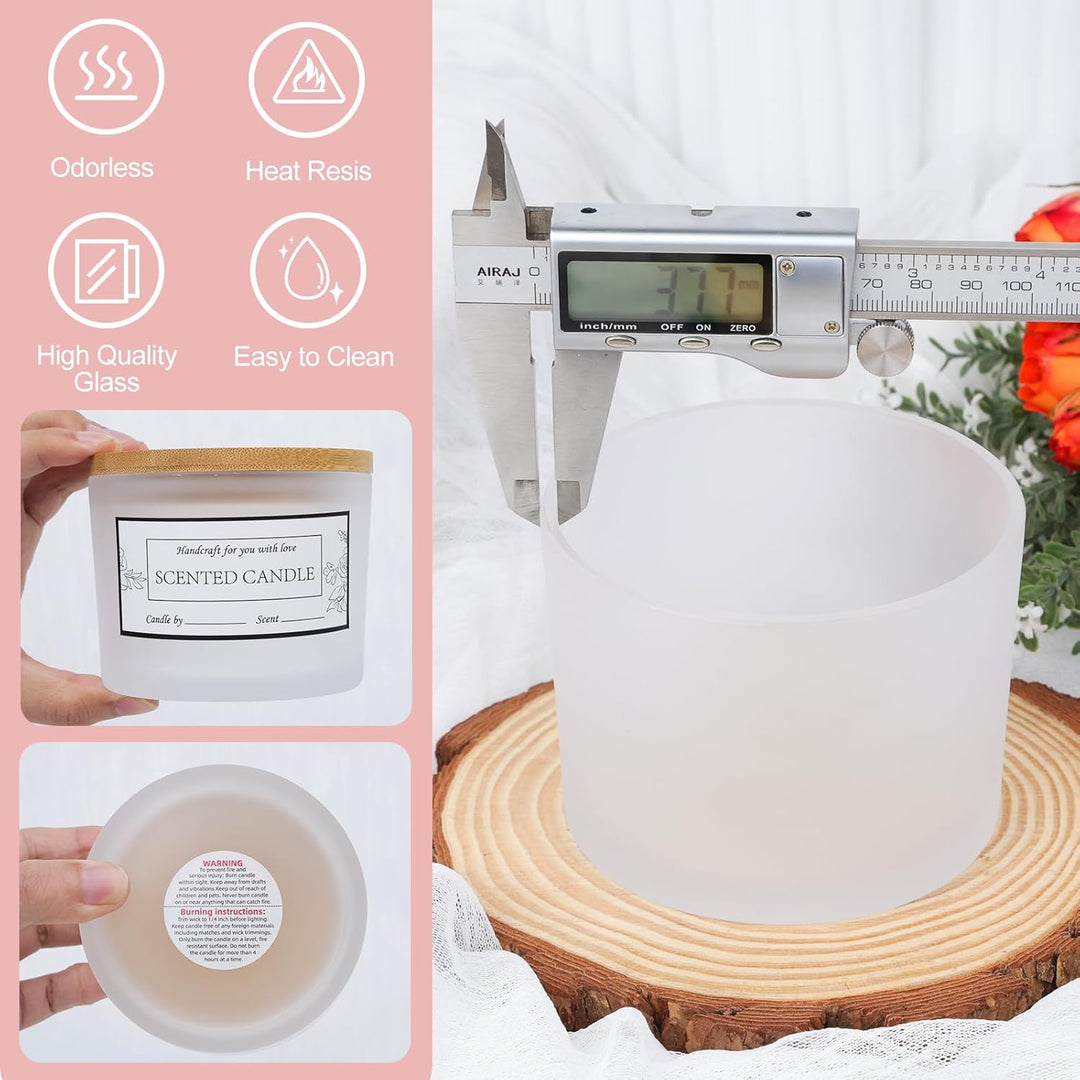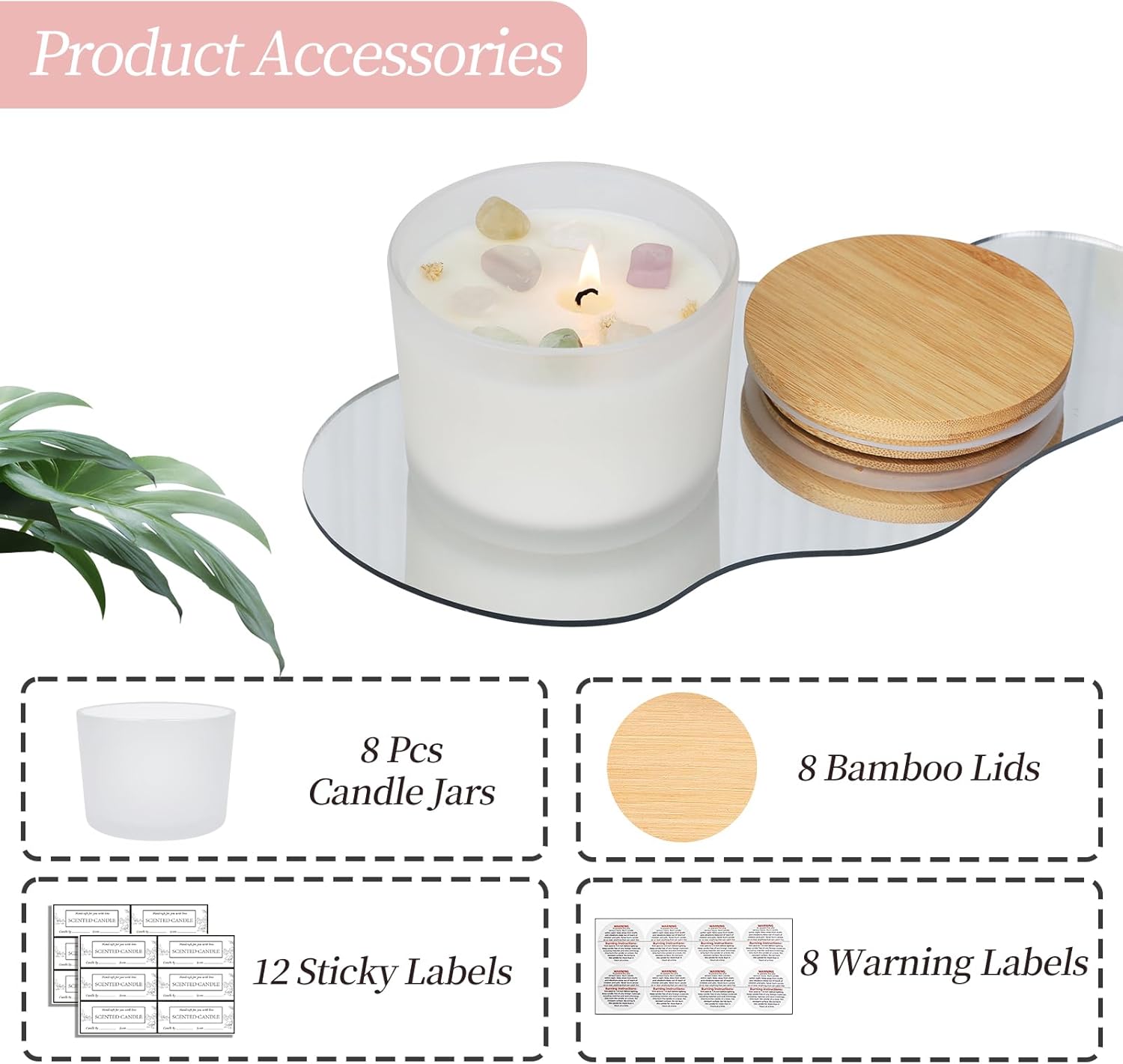 - 【Kaufenswert】 Sie erhalten 8 Stück 340.2 g Milchglas Kerzengläser mit Bambusdeckel, zusammen mit 12 Klebeetiketten und 8 Warnetiketten. Diese Kerzengläser bestehen aus verbessertem 3,7 mm dickem, hitzebeständigem Glas, das ungiftig, ungefährlich