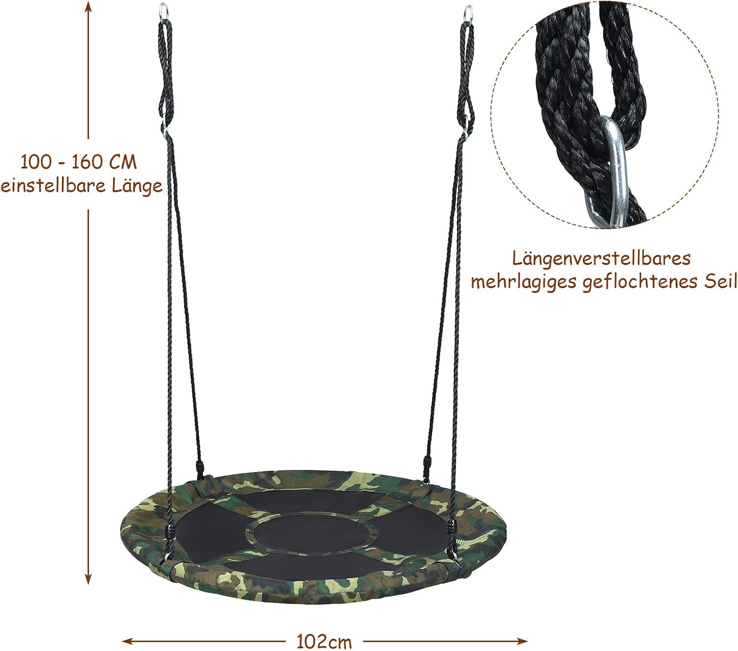 - 【Verstellbare Höhe für verschiedene Bedürfnisse】Da verschiedene Orte unterschiedlich viel Platz für Schaukeln bieten, haben wir unsere Schaukel höhenverstellbar designt. Sie können die Höhe von 100cm - 160cm einstellen und die für Ihre Kinder