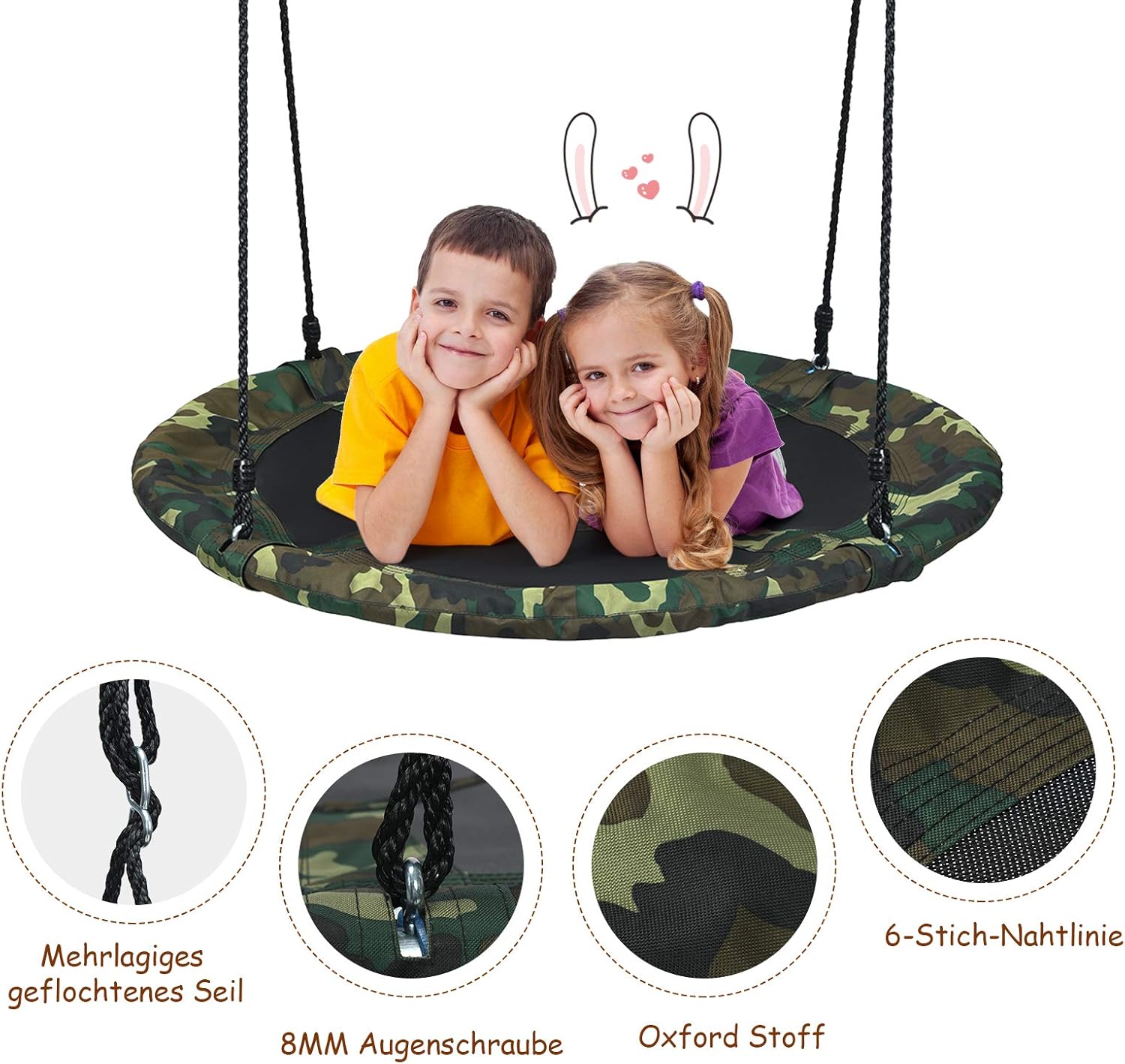 - 【Sicheres Material & hohe Tragkraft】In Anbetracht der Sicherheit wurde unser Produkt aus den stärksten und sichersten Materialien, wie Oxford-Stoff, PP und einem industriefesten Stahlrahmen, hergestellt. Unsere Schaukel hat eine Tragkraft von 150 kg
