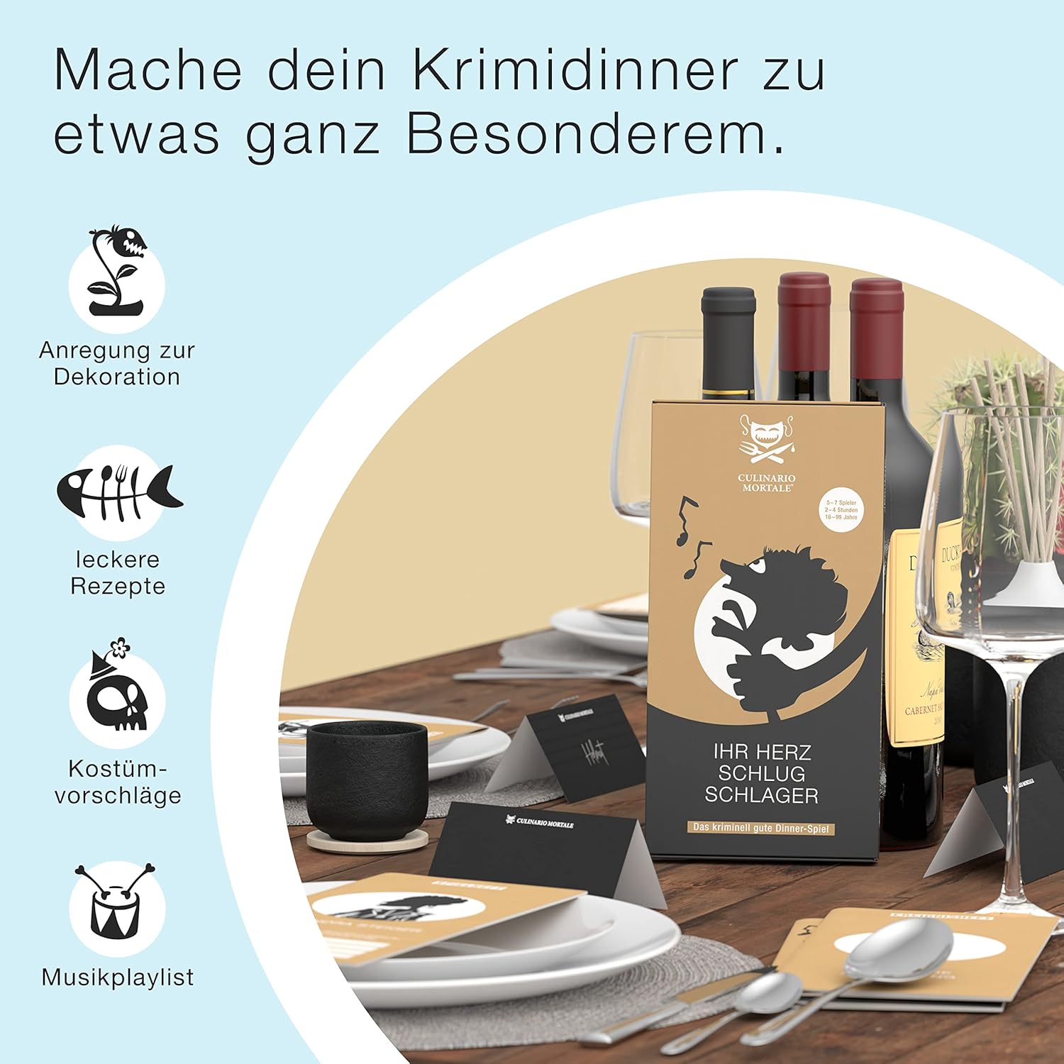 - CULINARIO MORTALE – Wir sind ein kleines Team aus grossen Krimi-Dinner Fans. Unsere Krimidinner Spiele für zuhause testen wir natürlich alle selbst und sind immer dabei weitere Geschichten zu entwickeln – bleibt gespannt.
