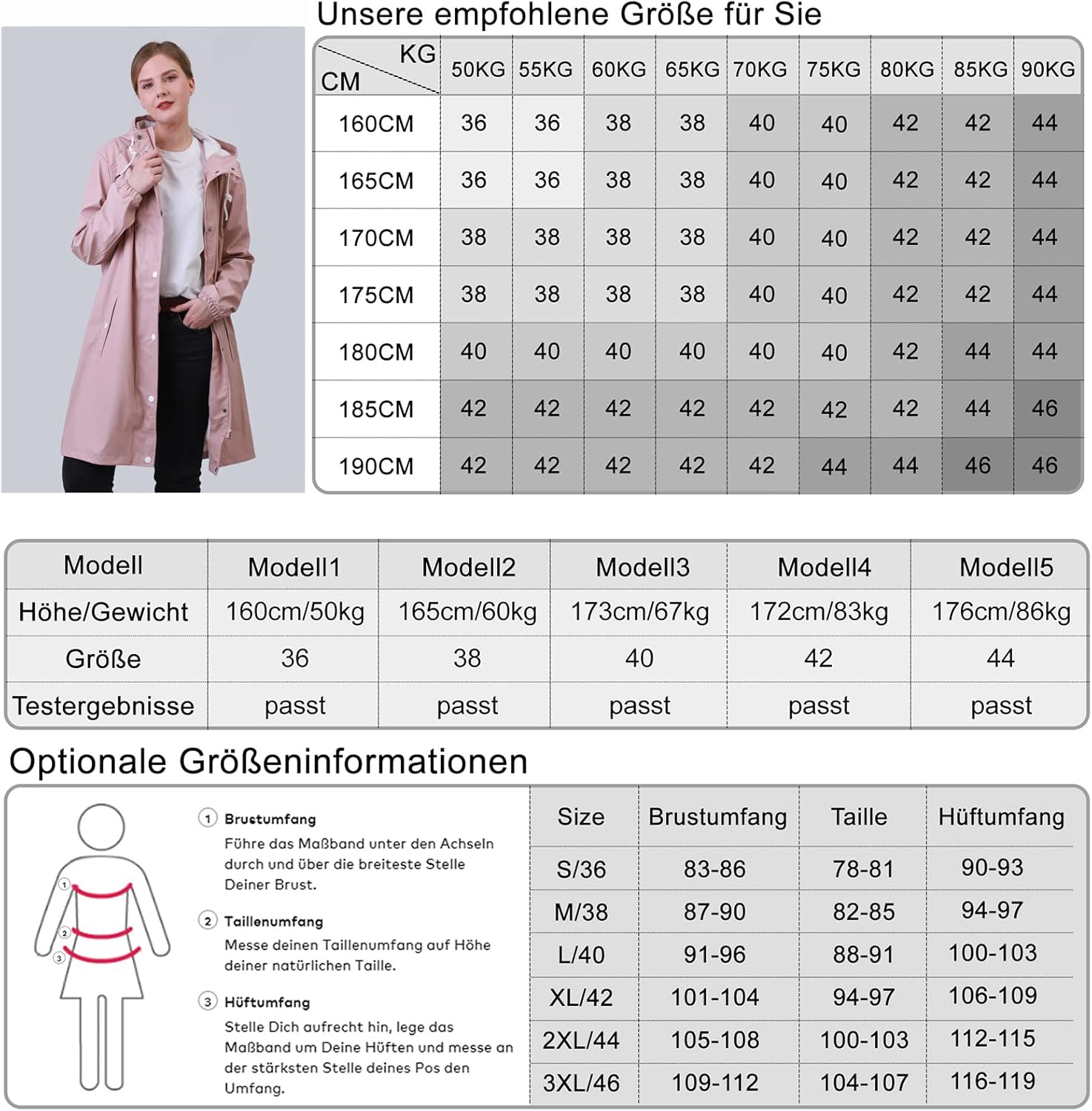 - 【Praktischer Zwei Wege Reissverschluss】Damen Regenmantel verfügt über robuste Reissverschlüsse, der den Saum des Regenmantels bei Bedarf von unten nach oben zieht, sodass Mann sich leicht bewegen.