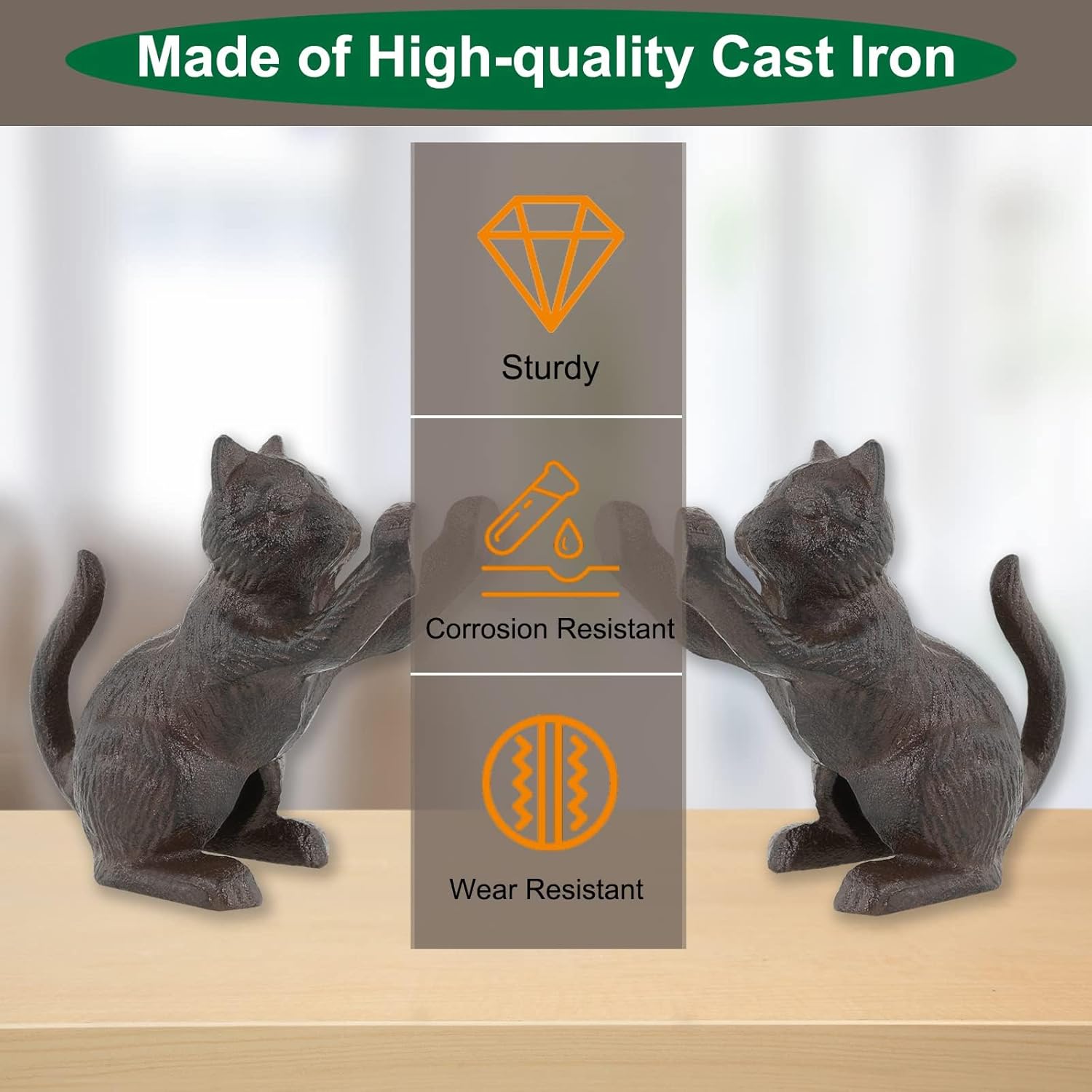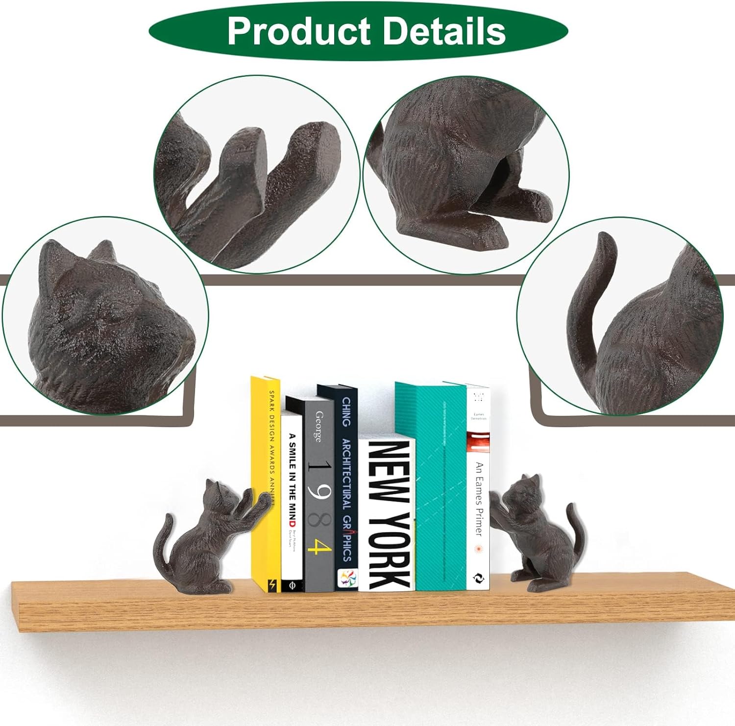 - Gusseisen-Metall – Bücherstützen in Katzenform aus hochwertigem Gusseisen, robust und langlebig. Im Gegensatz zu Bücherstützen aus Kunstharz sind unsere Gusseisen-Bücherstützen umweltfreundlich und verblassen nicht.