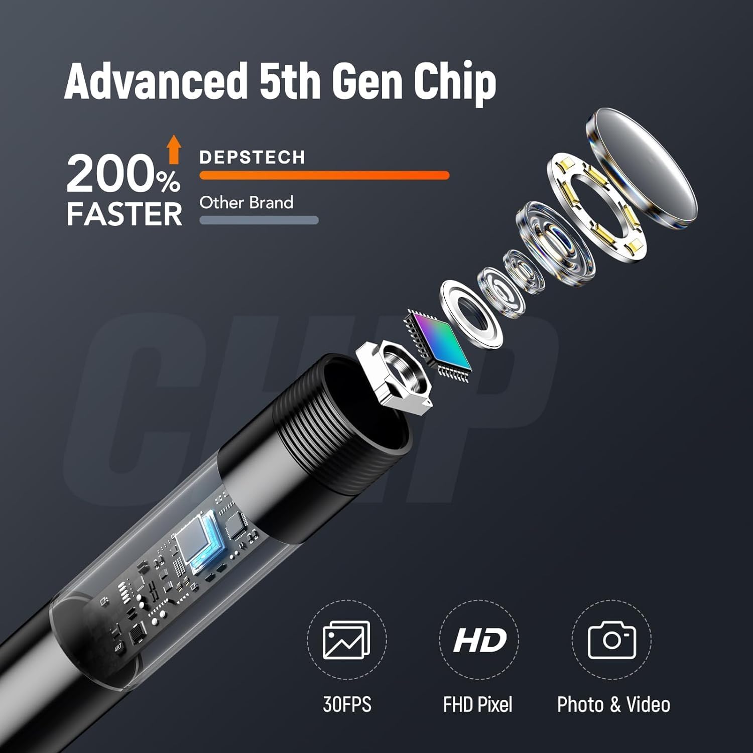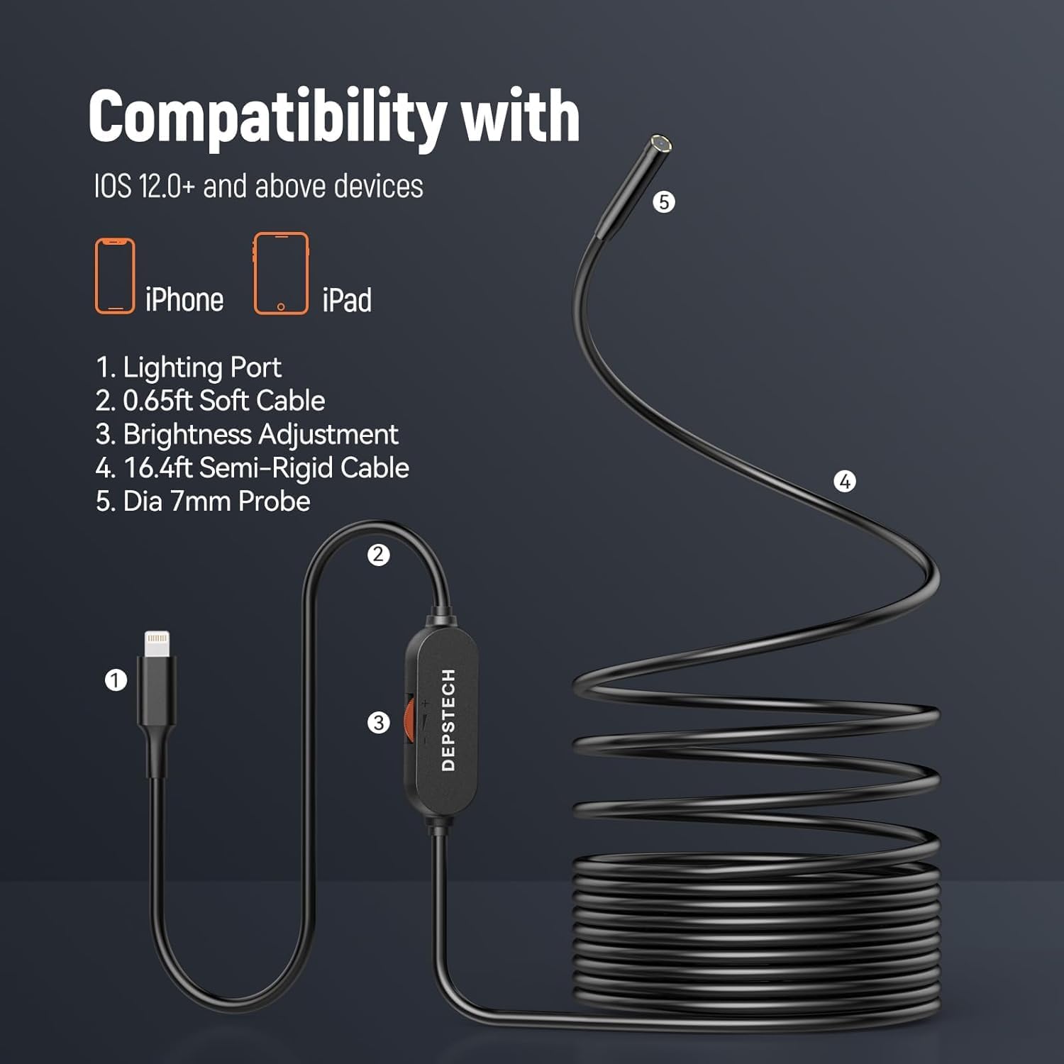 - 【Unschlagbare Konnektivität】Angetrieben von einem Chip der fünften Generation sorgt dieses Endoskop für eine ultra-stabile Konnektivität. Es ist ein Kinderspiel, eine Verbindung mit iOS 12.0+ Geräten herzustellen (ausser für die Serie 15),