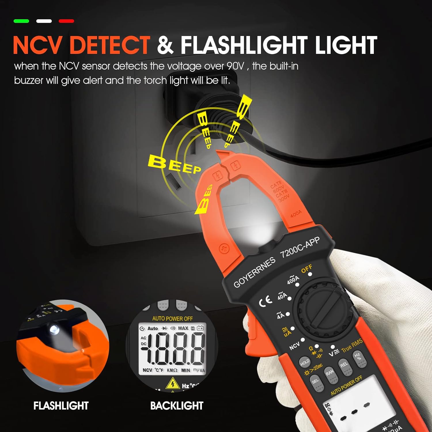 - ✅【Multifunktions-Zangenmessgerät】 Messung der Gleichspannung 400 mV-600 V; Wechselspannung: 4V~600V; kleiner Bereich Gleich-/Wechselstrom: 400uA-4000uA; Wechselstrom: 4A-400A; Widerstand 400Ω-40 MΩ; berührungslose Spannungserkennung (NCV),