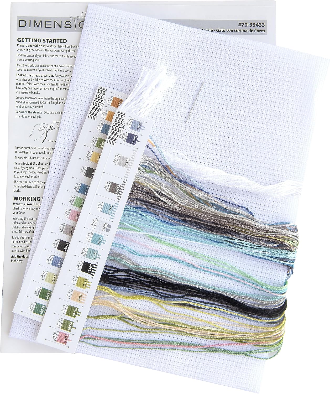 - Dimensions Kreuzstich-Set mit vorsortiertem Faden, weissem Aida-Zählstoff (16-fädig, Nadel) und Anleitung (evtl. nicht in deutscher Sprache)
