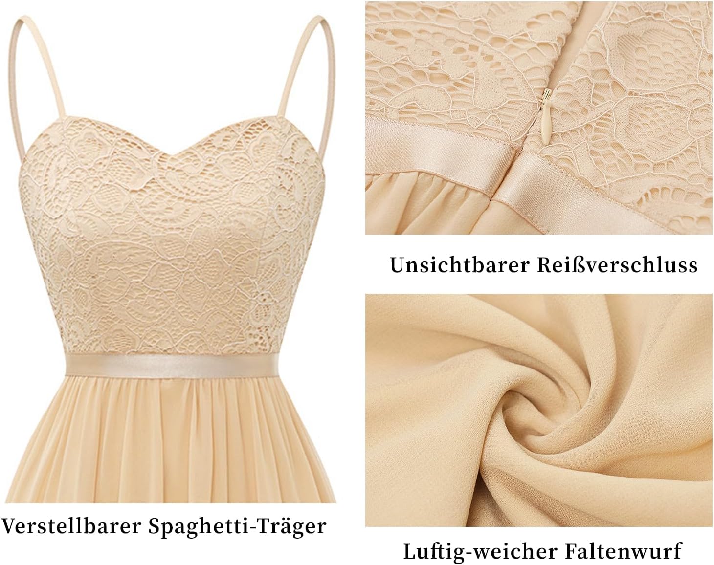 - Atemberaubende Brautkleider: Dieses lange Brautkleid kombiniert weiche Spitze mit fliessendem Chiffon, die sich gegenseitig ergänzen. Die elegante weisse Farbe ist perfekt für Gartenpartys im Frühling und Strandhochzeiten im Sommer