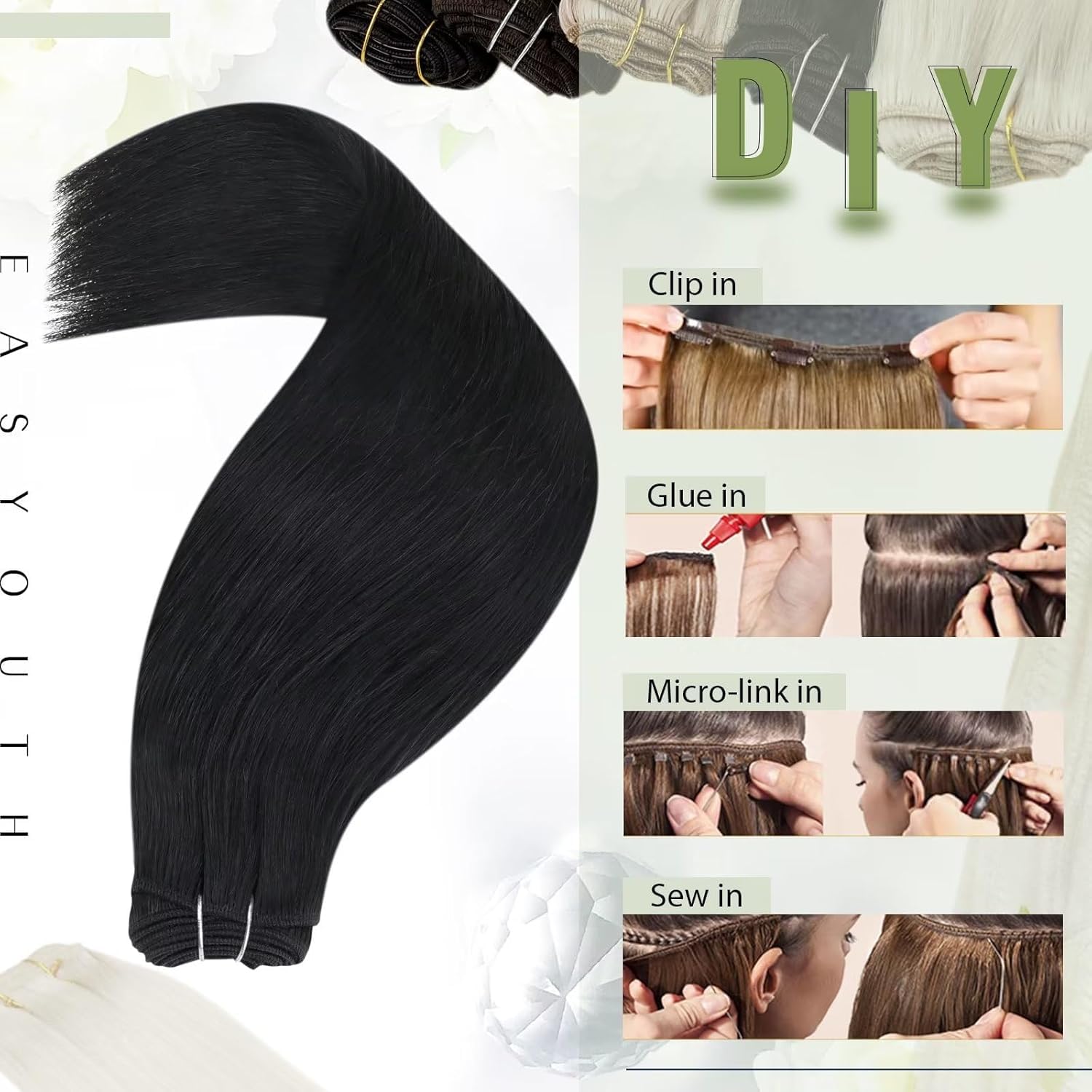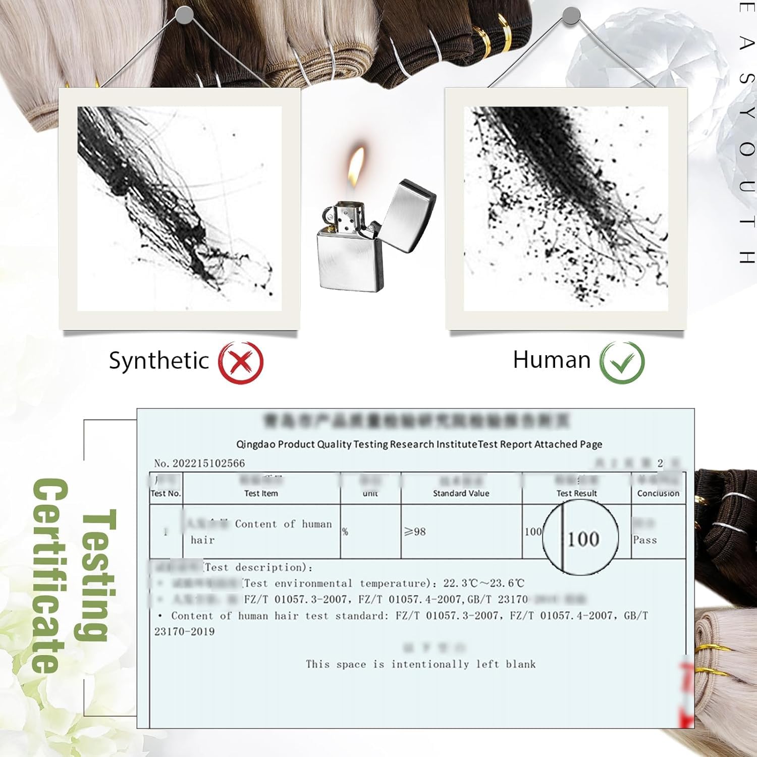 - Double Weft Sew in Haarverlängerungen: Easyouth Schuss Haarverlängerungen verwendet Anti Shedding starken Doppelschuss Prozess, zwei Schüsse nähen zusammen, um das Haar Nähen kompakter zu machen, Remy Haarverlängerungen ist nicht leicht zu