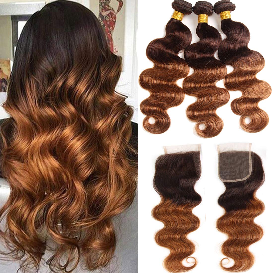 - 猸怘aarfarbe: Ombre Brazilian Hair Body Wave Haarb眉ndel, Ombre Hair Bundles 100% Echthaar, hellbraun bis mittelbraun