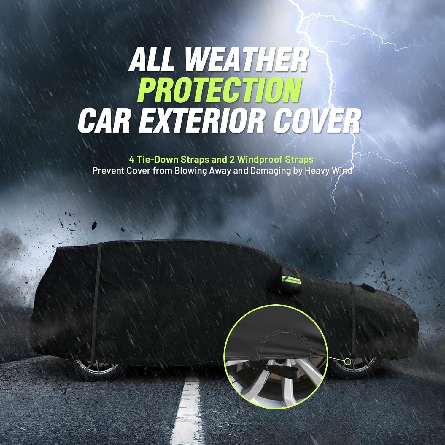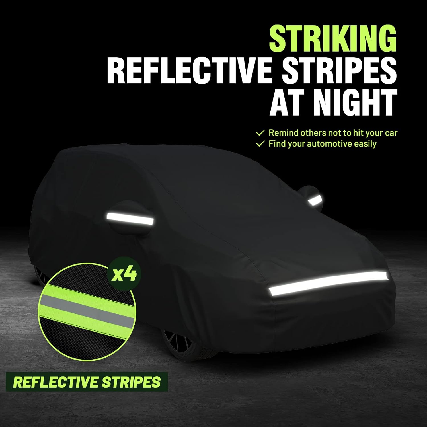 - Robustes Material: Hergestellt aus einer hochwertigen, 5-lagigen, strapazierfähigen Baumwolle und PEVA, ist diese Autoabdeckung nicht nur robust, sondern auch 100 % wasserdicht. Das innere Baumwollmaterial bietet zusätzlichen Schutz, um Kratzer auf