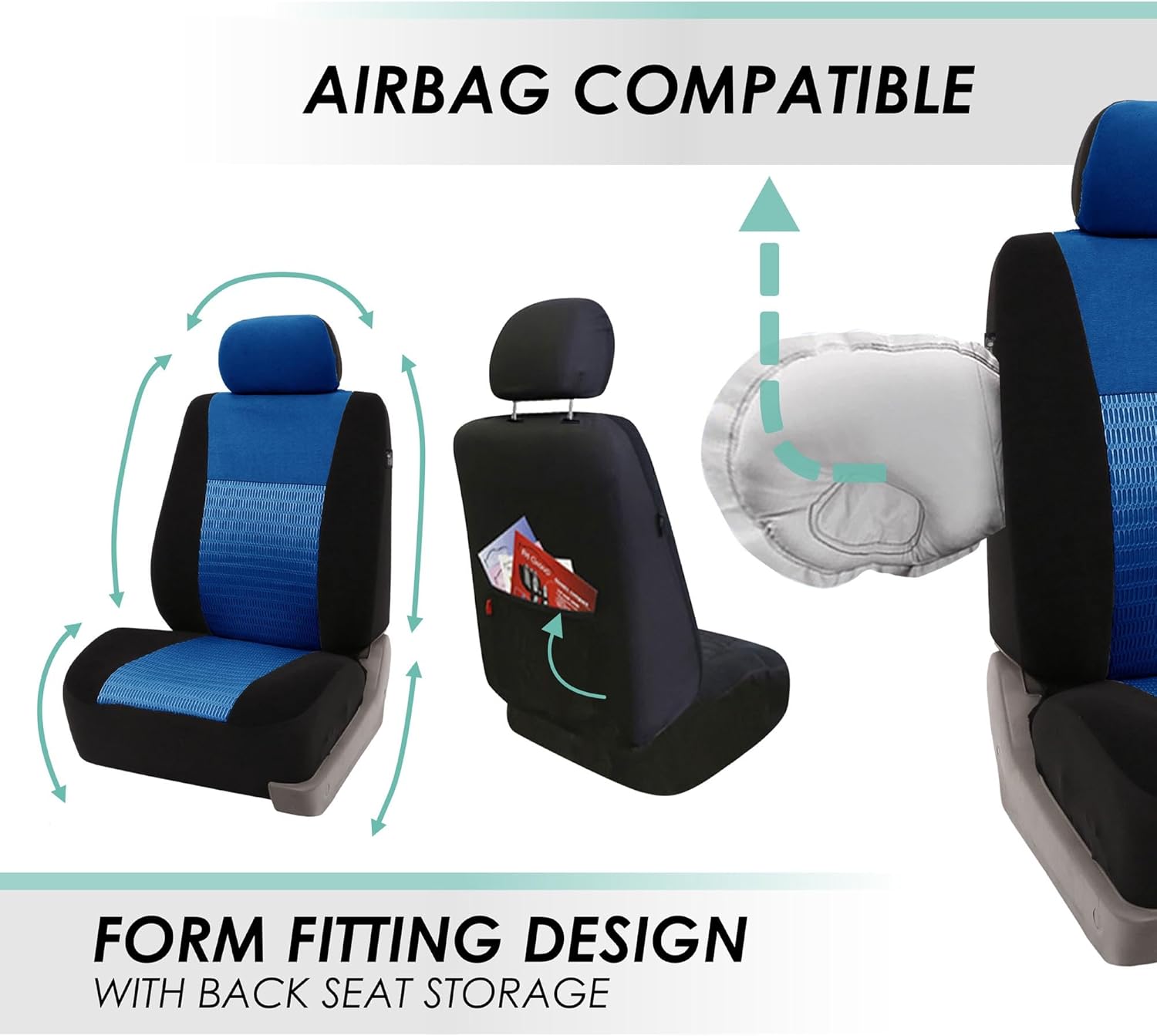 - Vordersitz-Aufbewahrungstasche: Die Vordersitzbezüge verfügen über eine praktische Kartentasche auf der Rückseite des Sitzes, damit Sie alles verstauen können, was Sie brauchen, und haben einfachen Zugriff.