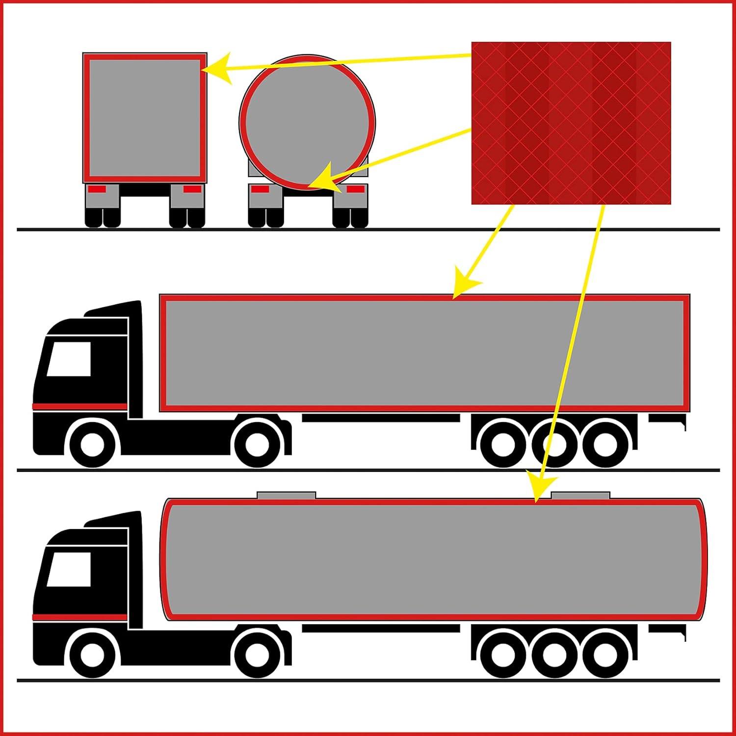 - Anwendung: Markierung der Seiten und Umrisse von LKW`s und Anhängern/Aufliegern gemäss UN ECE 104 für erhöhte Sichtbarkeit und Aufmerksamkeit