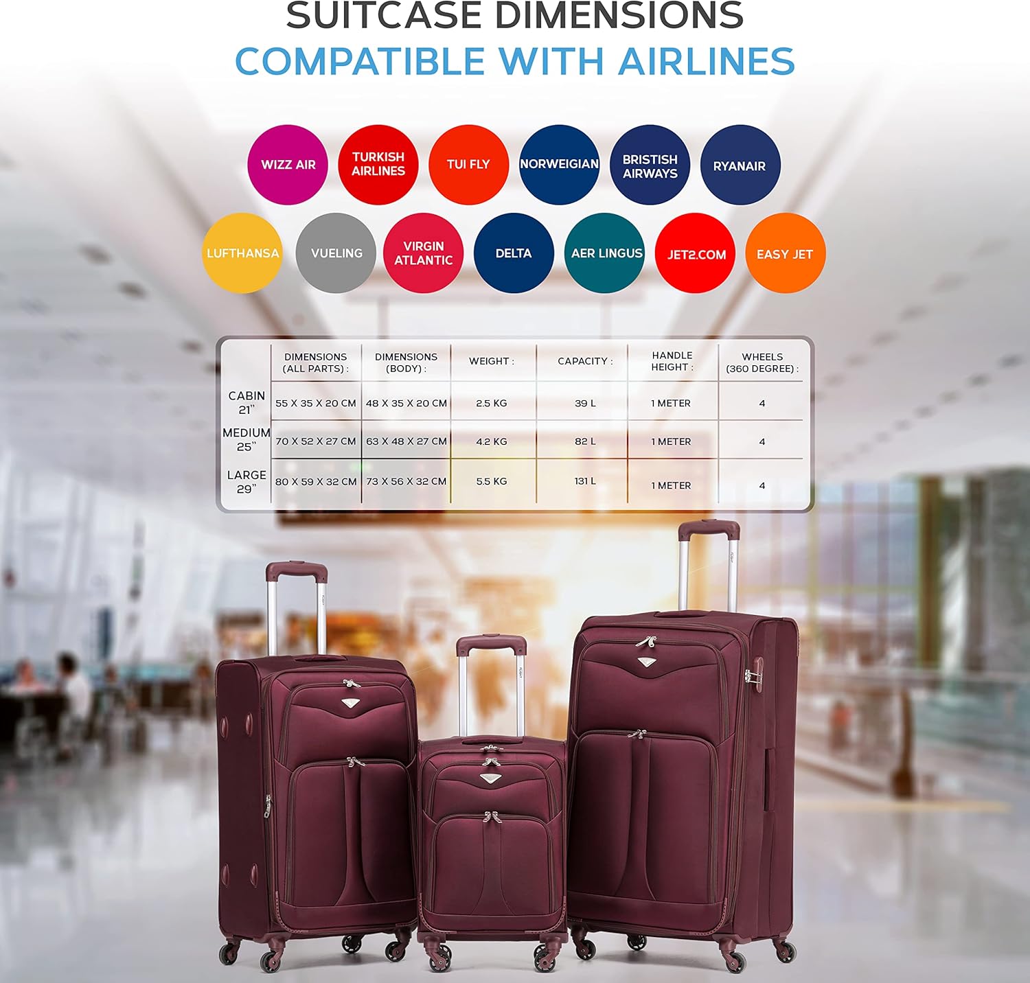 Variante: Handgepack 55cm + M 73cm + L 83cm Burgund/Silber