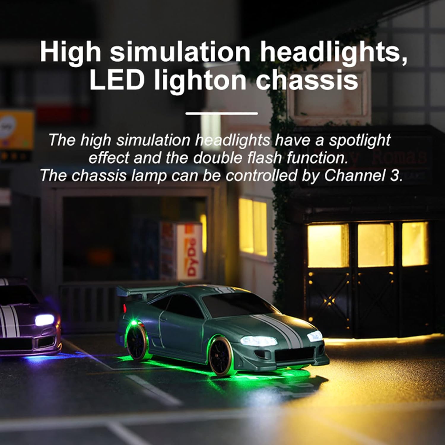 - High Simulation Scheinwerfer, LED-Licht auf Chassis Die High Simulation Scheinwerfer haben einen Scheinwerfereffekt und die Doppelblitzfunktion. Die Chassisleuchte kann über Kanal 3 gesteuert werden.