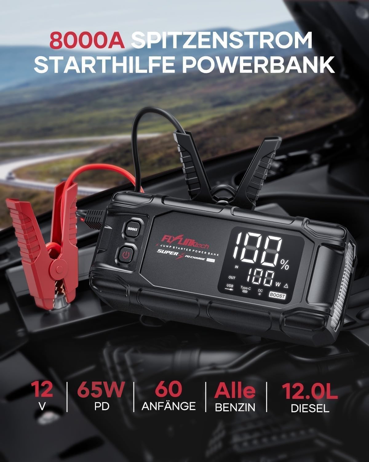 - ποΈγππ¬π¬π¬π ππππ¦π§π¨π‘ππ¦πΓππππ ππ¨π§π’ π¦π§ππ₯π§πππππγ: Diese Auto Starthilfe Powerbank hat einen Spitzenstrom von 8000 A und kann ein leeres 12V-Auto (alle