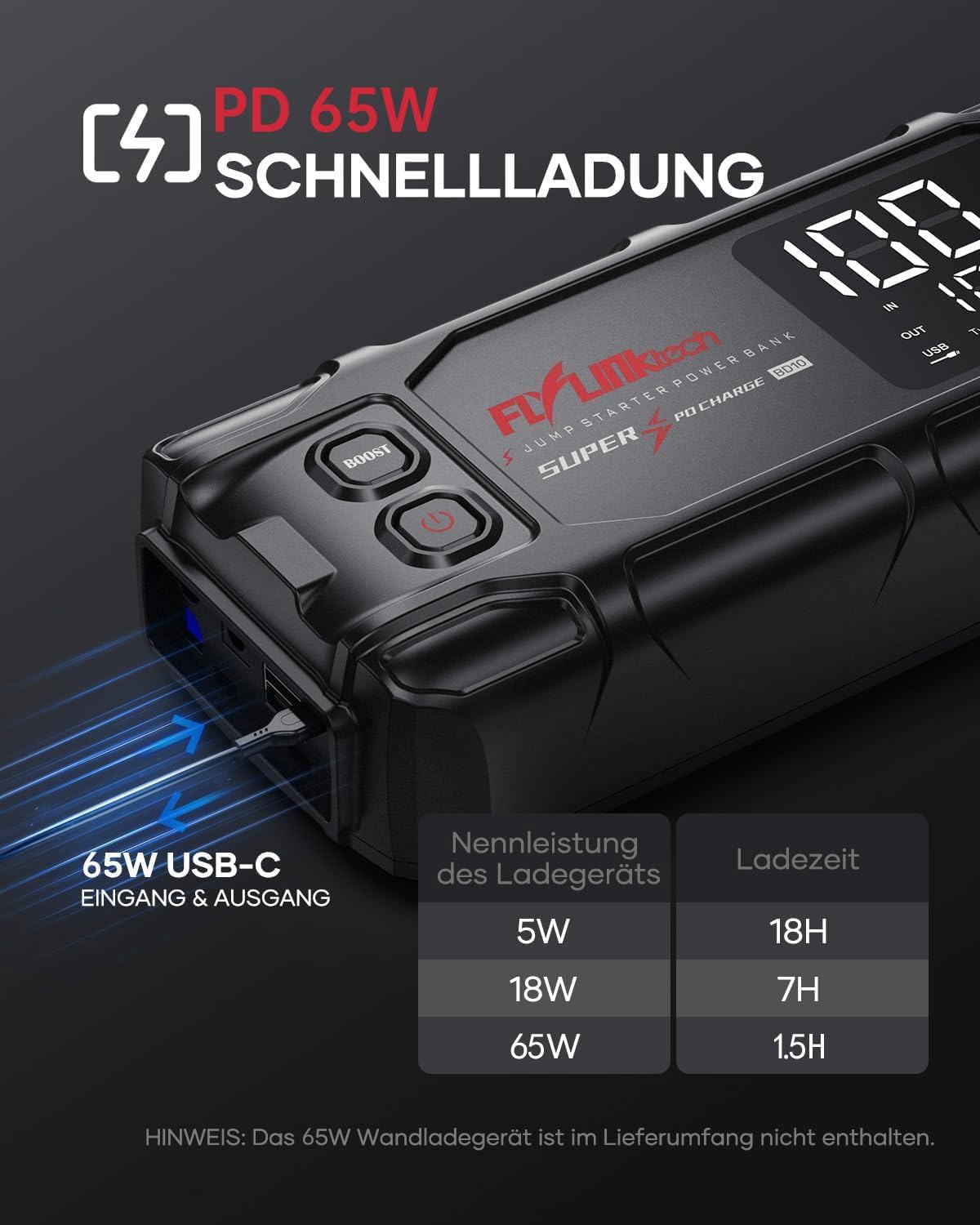 - ποΈγπ²π¬π¬ ππ¨π ππ‘ πππ-π§ππ¦ππππ‘πππ π£πγ: Die FLYLINKTECH BD10 Starthilfe-Powerbank ist mit einer 600 Lumen ultra-hellen LED-Taschenlampe mit 3 Modi (Taschenlampe/SOS/Stroboskop)