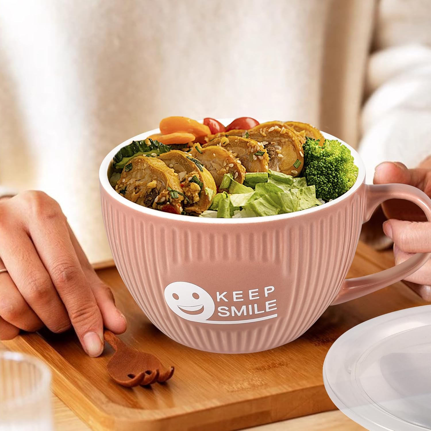 - 【Einzigartiges Design】 Diese Suppentasse mit breiter Öffnung und Griff und Deckel hat ein einzigartiges Design mit lustigem lächelndem Gesicht und KEEP SMILE-Schriftzug, um immer an die Augen zu erinnern - Keep Smiling, denn das Leben ist eine
