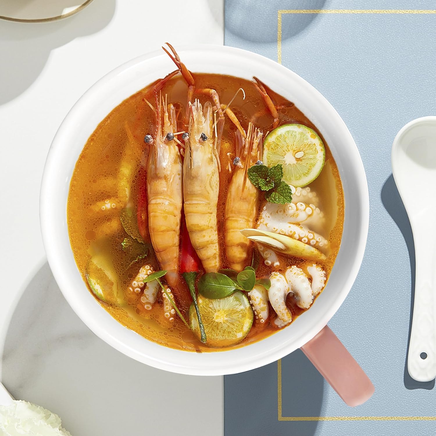 - 【Premium-Material】Starke Keramikkonstruktion, bleifrei, cadmiumfrei, sicher und gesund hochwertiges Porzellan, verdickt, splitterfest, machen diese Studie und langlebige Suppenschüssel mit Griff und mit Deckel sind für heisse und kalte Getränke