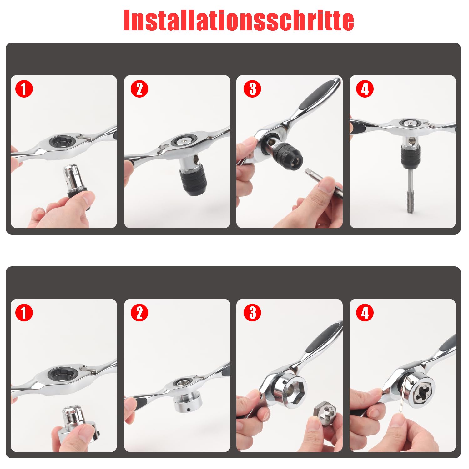 - 【Hochwertig】 Die Gewindeschneidsatz geeignet für hochfeste unlegierte Stähle und niedriglegierte Stähle, Temperguss und NE-Metalle.Es ist ein grossartiger Werkzeugsatz, Eine super Zusammenstellung für den Kundendienstwagen oder für die