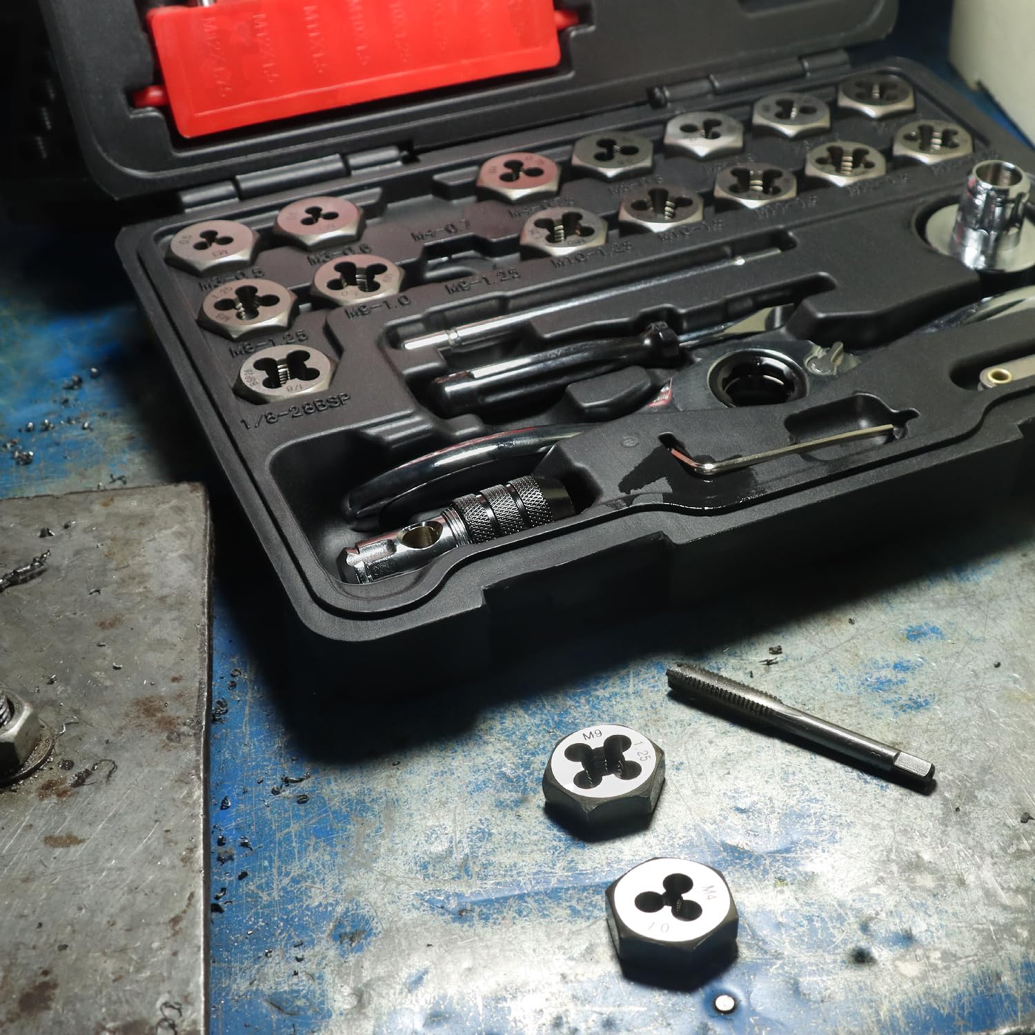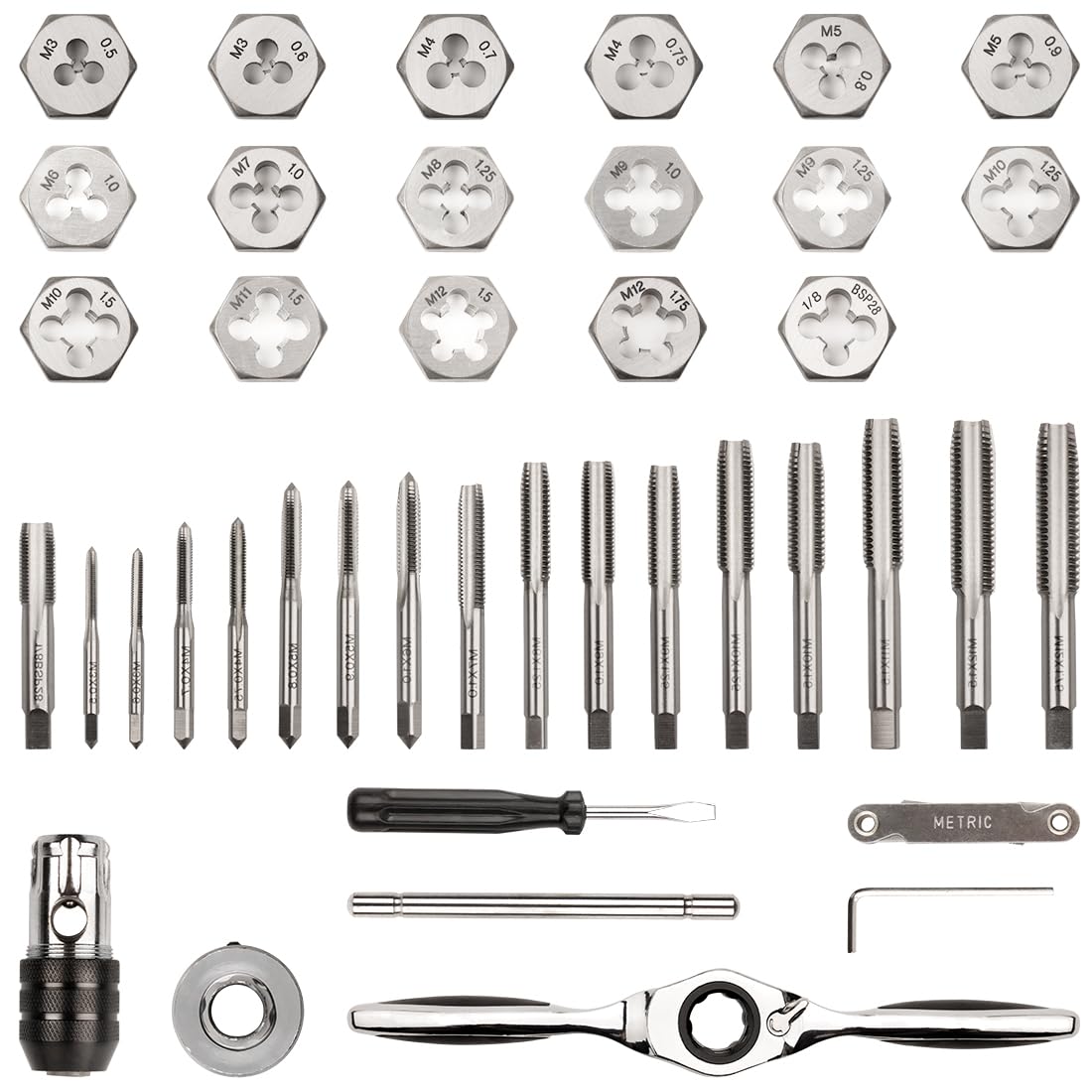 - 【Robust und langlebig】 Die Gewindeschneidsatz 41-tlg aus geschliffenem Hochleistungsschnellarbeitsstahl gefertigt für Haltbarkeit und lange Lebensdauer.