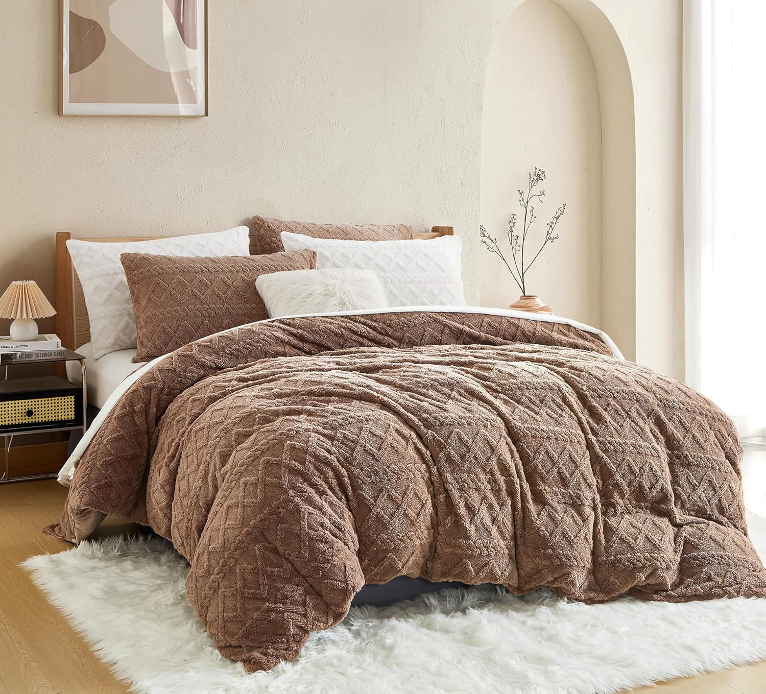 - 【Luxus Flauschig】Finger weg vom kalten winter! Die vorderseite des bettbezugs weist deutliche konkave und konvexe streifen und geometrische figuren auf, voller bohème-stil, romantisch und lieblich. Der plüsch fühlt sich angenehm an und kein