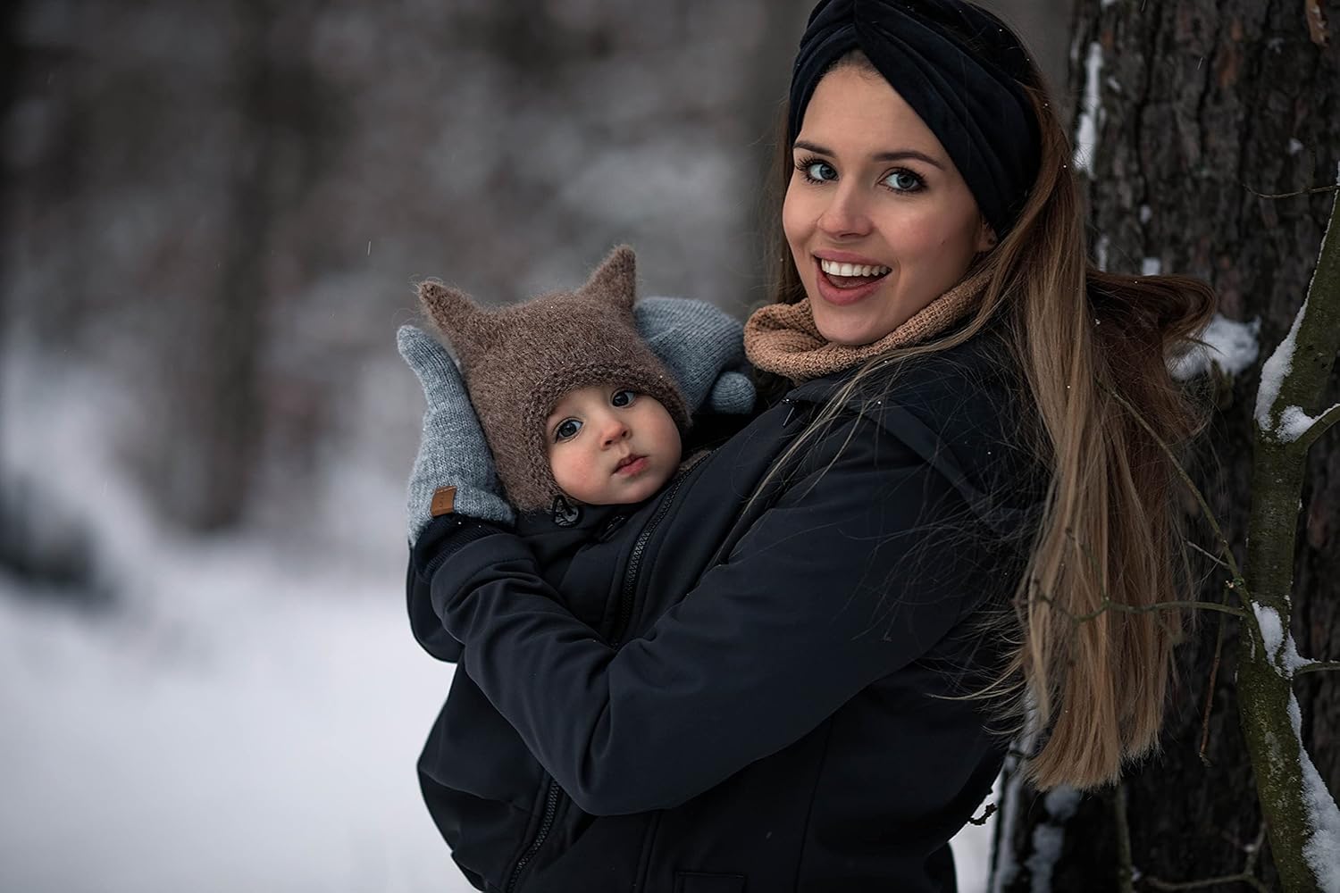 - Elastische Bündchen mit Daumenloch, Bündchen in Mama Kaputze als auch in der kaputze von dem Baby um das Kopfchen warm zu halten