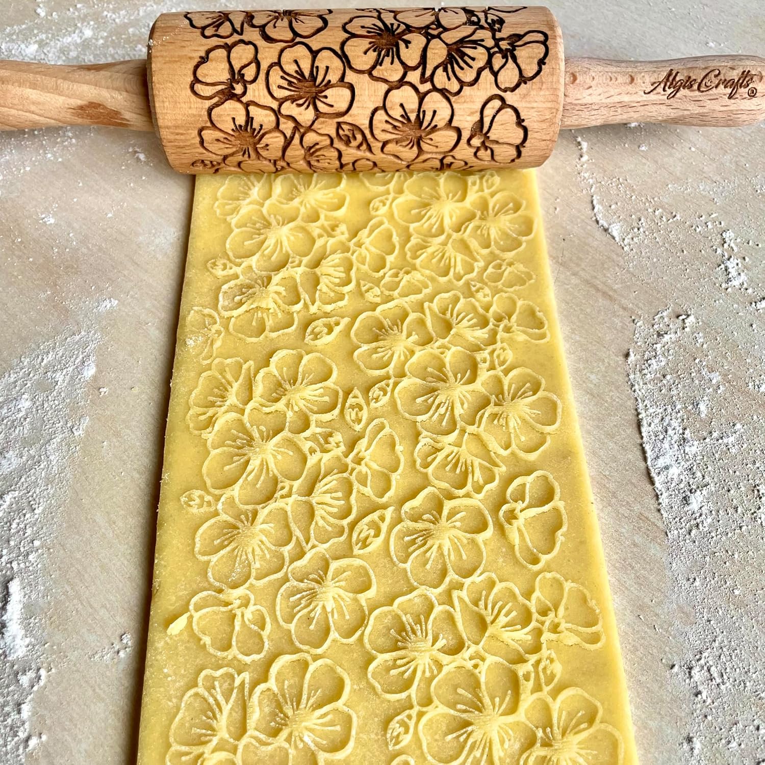 - Lasergravur wird auf dem Nudelholz angebracht, und hinterlässt einen deutlichen Abdruck auf dem bearbeiteten Teig. Das Nudelholz wird mit den Händen poliert und mit einem Holzschutz imprägniert, der aus natürlichem Leinöl.