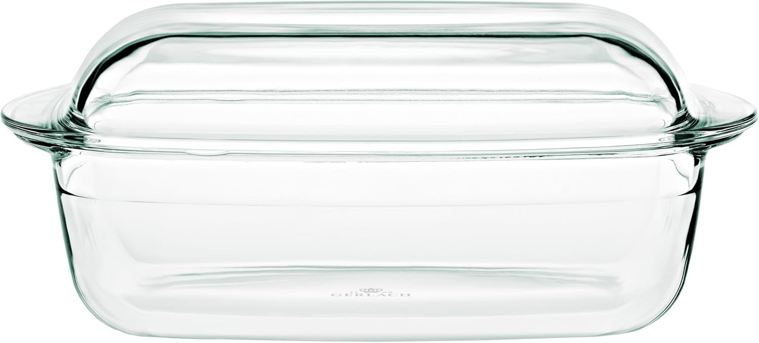 - Volumen: 4500 ml; Aussenmasse mit Griffen: 27 × 18cm; mit Deckel; moderne Optik in transparenter Ausführung – perfekt als Glas-Bräter oder stilvolle Backform.