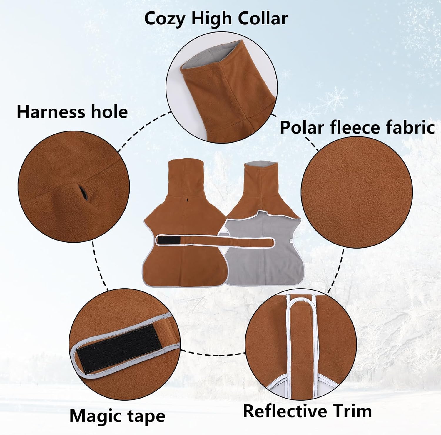 - 3. Whippet wintermantel Mit warmem Fleece-Futter, reflektierenden Paspeln, Klappe mit hohem Halskragen . Die magischen Klettverschlüsse um den Bauch passen den Mantel sehr einfach an. Er ist einfach anzuziehen und auszuziehen.
