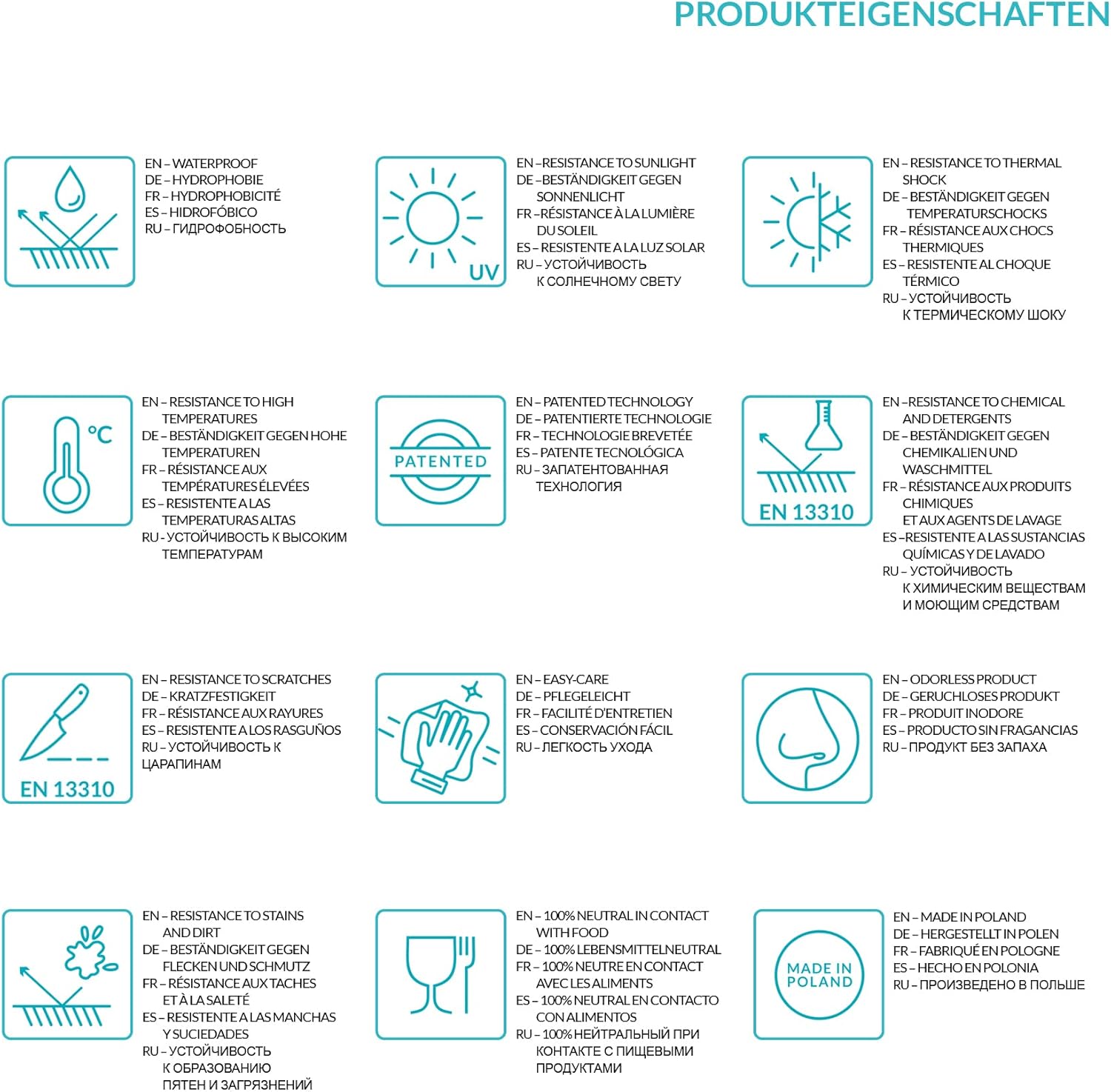 - ✅Materialien: Die Spüle besteht zu 80 % aus Granit und zu 20 % aus speziellem Harz, was ihre Festigkeit und Haltbarkeit gewährleistet. Darüber hinaus ist es vom PZH (Nationales Hygieneinstitut) für seine hydrophoben und antibakteriellen