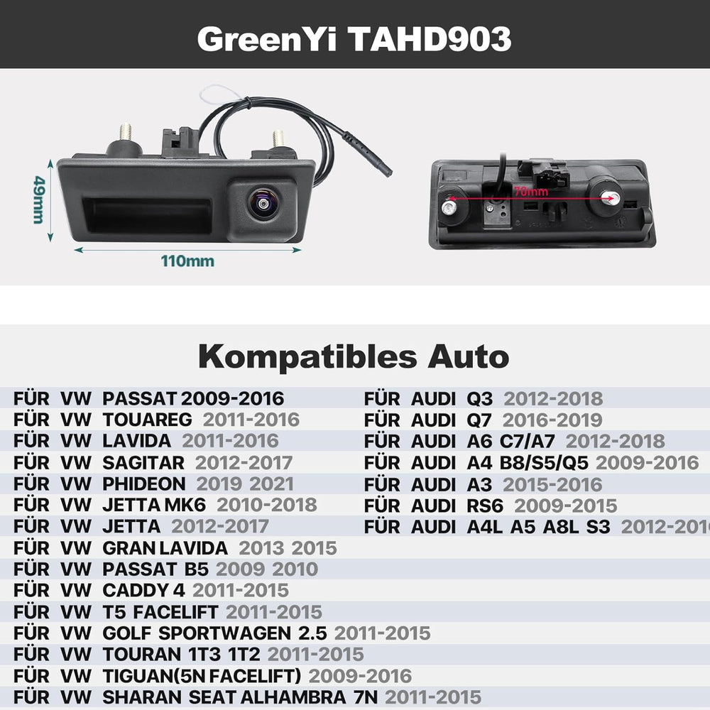 - Auto-Rückfahrkamera mit Kofferraumgriff für VW und Audi --- AHD verbessert die Bildleistung und maximale Auflösung bis zu AHD 720P. Mit einem ultraweiten Winkel von 160 Grad gibt es fast keinen toten Winkel hinter dem Auto. Die Funktion ist unter der