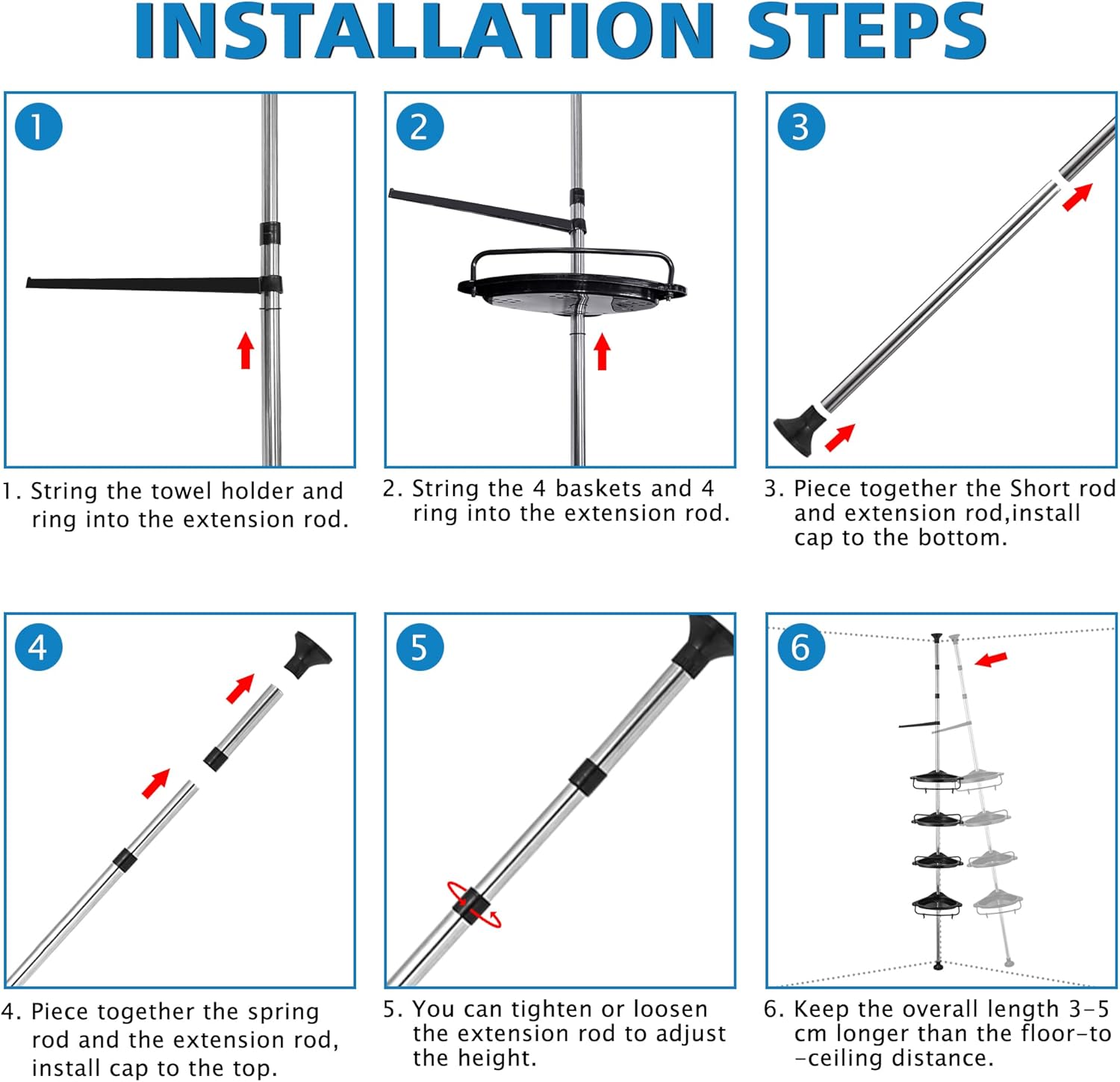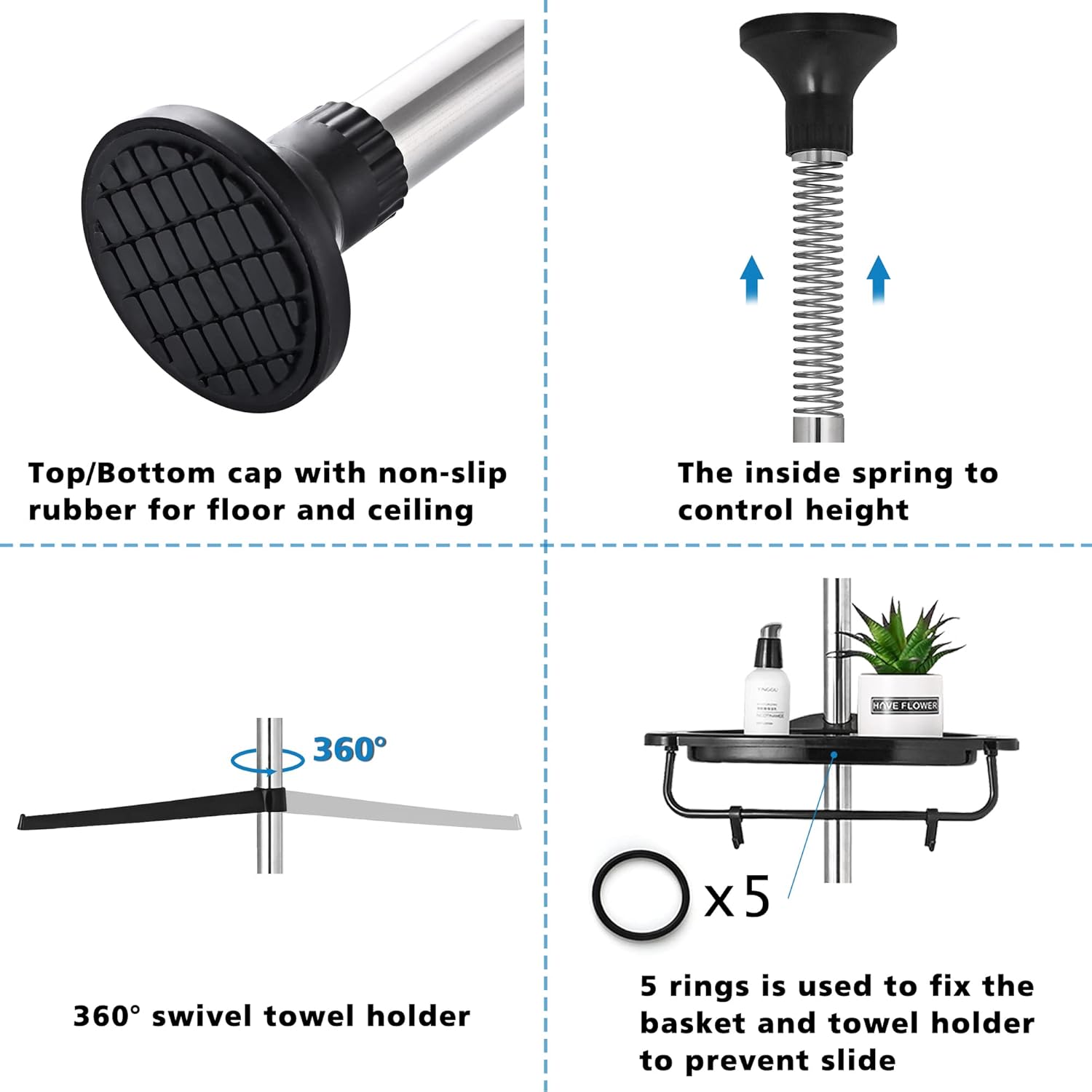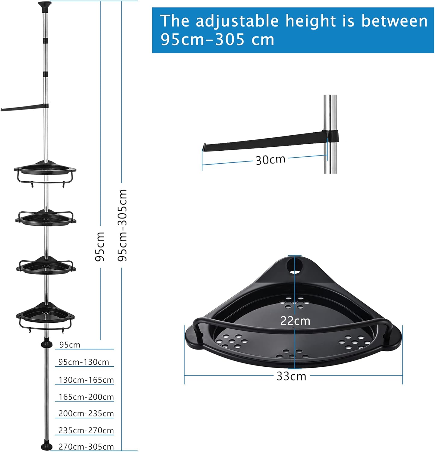 - (Tipp: Sehen Sie sich das Video im Produktbild an, bevor Sie das Produkt installieren) Höhenverstellbare Duschablage: Die dekorative Duschablage ohne Bohren von Gricol ist durch die von 95 bis 305 cm höhenverstellbare Edelstahl-Stange,Sie können nach
