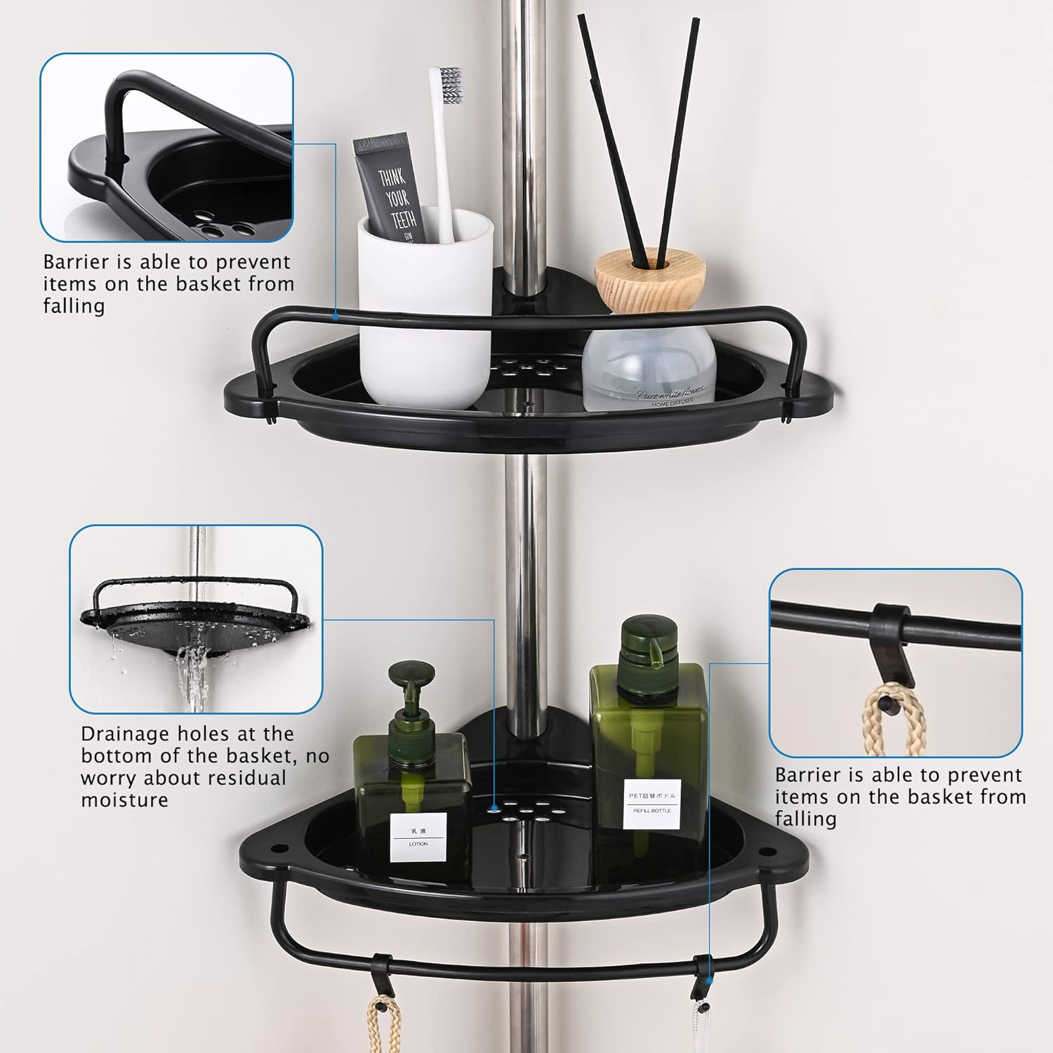 - Hochwertiges Material: Die höhenverstellbare Stange besteht aus Edelstahl, ist eine langfristige Aufbewahrungslösung für Ihr Badezimmer; Die DuschKörbe und das Handtuchhalter sind aus extra dickem PP (Kunststoff), das für grosse Belastbarkeit sorgt.