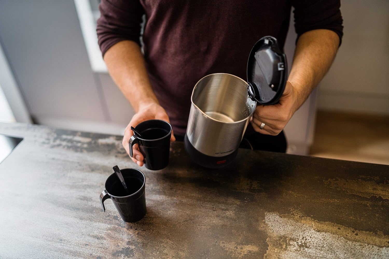 - Elektrischer Wasserkocher der Marke Grossag mit maximal 0,5 Liter Kunststoff-Topf