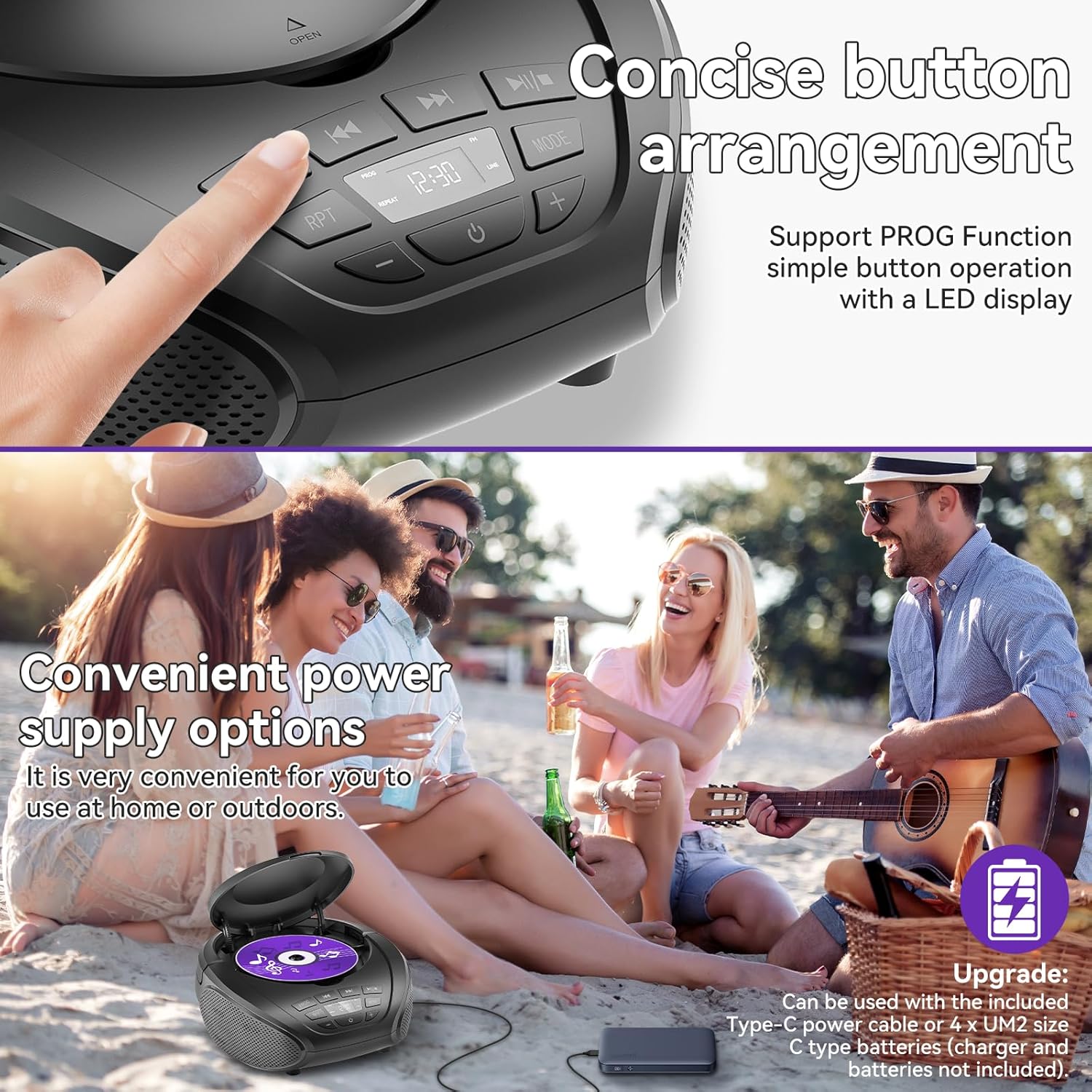 - Mehrere Stromversorgungsoptionen: Betreiben Sie die CD Player Kinder mit dem beiliegenden Type-C-Datenkabel oder 4 UM2-Grösse C-Typ 1,5V-Batterien (nicht im Lieferumfang enthalten) für flexible Nutzung. Einfach zu bedienen, ohne Fernbedienung. Ideal