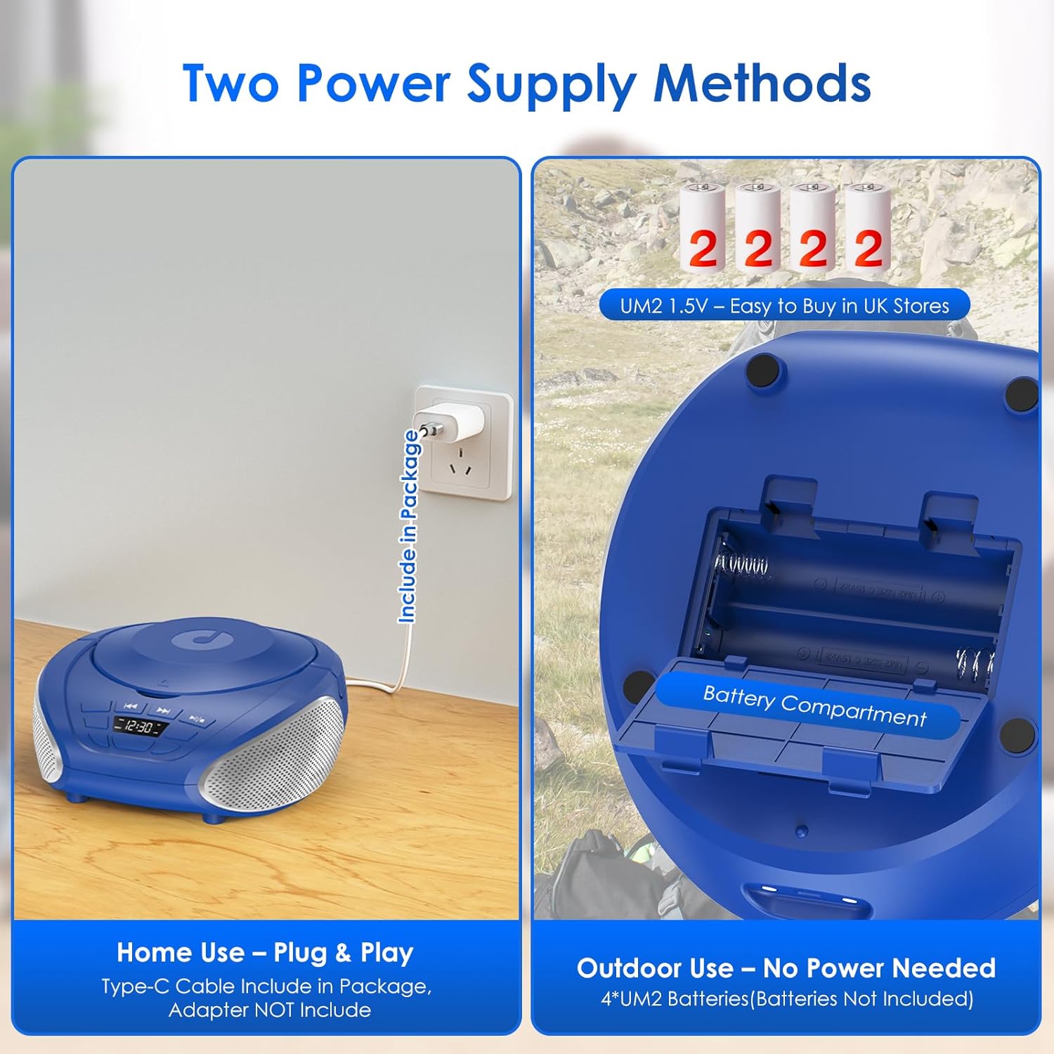 - Tragbar & Vielfältig Einsetzbar: Der leichte Gueray CD-Player ist ideal für Picknicks, Reisen oder entspanntes Musikhören daheim. Er lässt sich auch mit einer Powerbank betreiben (Type-C-Kabel im Lieferumfang) und bietet damit maximale Flexibilität