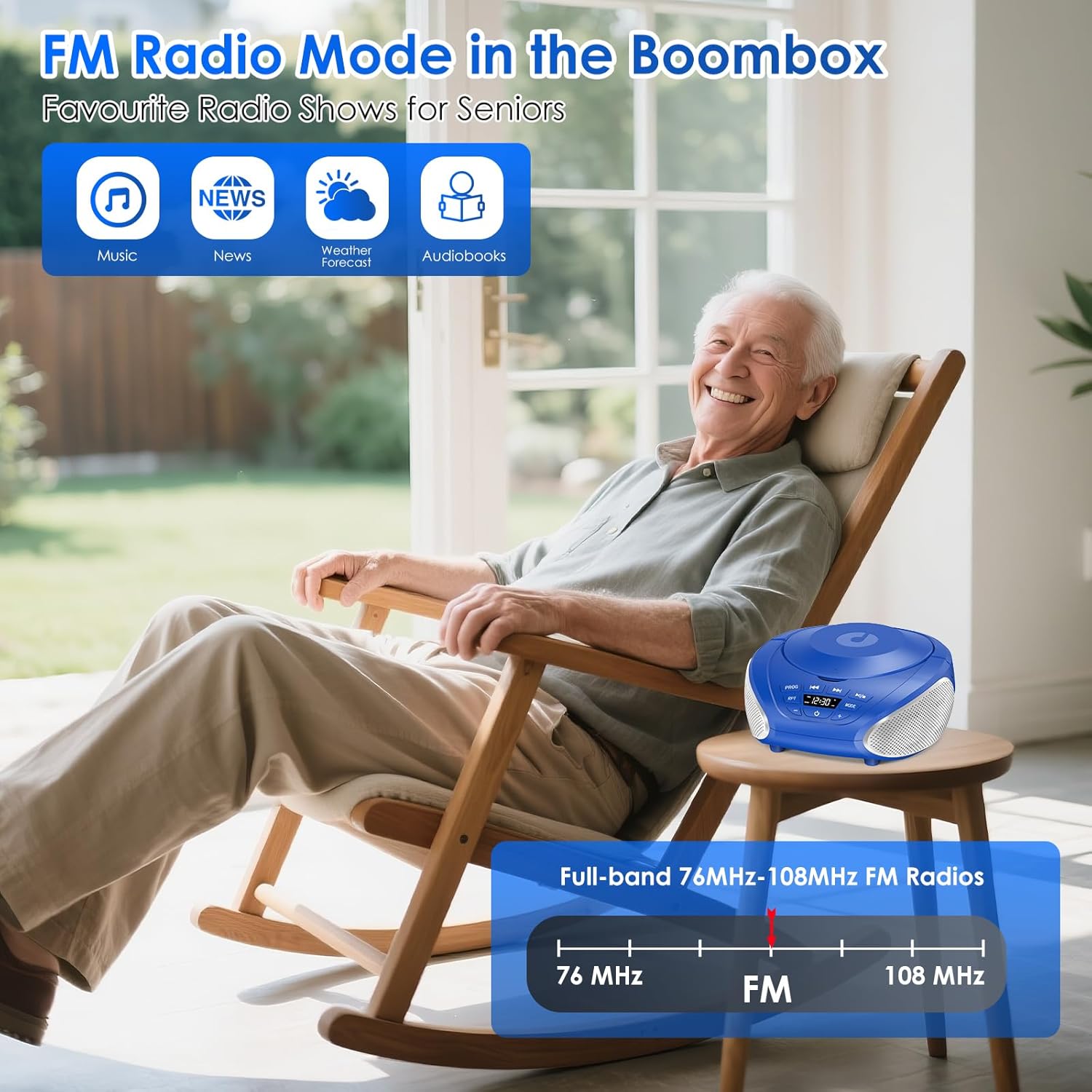 - Klarer Stereo-Sound: Mit doppelten Akustikkammern und optimierten Lautsprechern liefert dieses portable CD-Player-Boombox satten, klangvollen Sound – besser als vergleichbare Geräte in dieser Preisklasse. Egal ob über Kopfhörer oder die integrierten