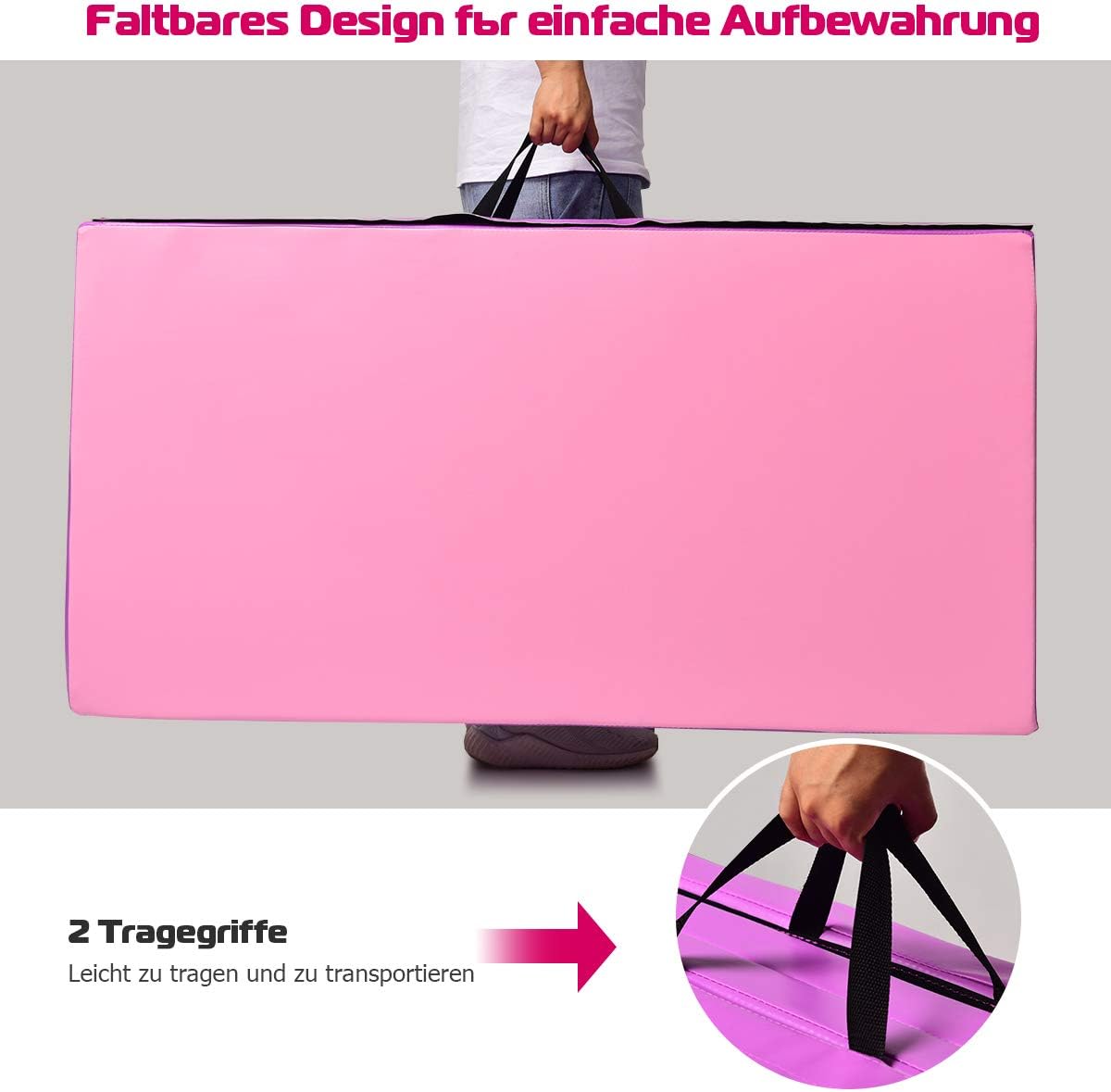 - ﹟ Sicherheit & Komfort Erlebnis ﹟ Diese faltbare Gymnastikmatte besteht aus hochwertigem und dickem PU-Stoff und weicher EPE-Perlenbaumwolle, die den Aufprall und die Schmerzen auf dem Boden beim Training lindern kann und verhindert, dass Sie sich