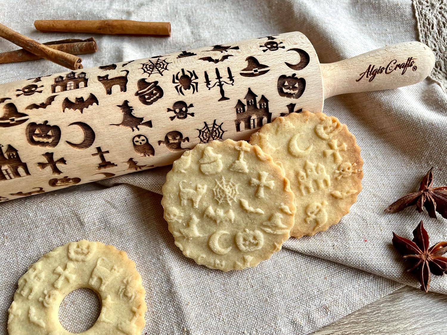 - Die Lasergravur wird auf dem Nudelholz angebracht und hinterlässt einen deutlichen Abdruck auf dem bearbeiteten Teig.