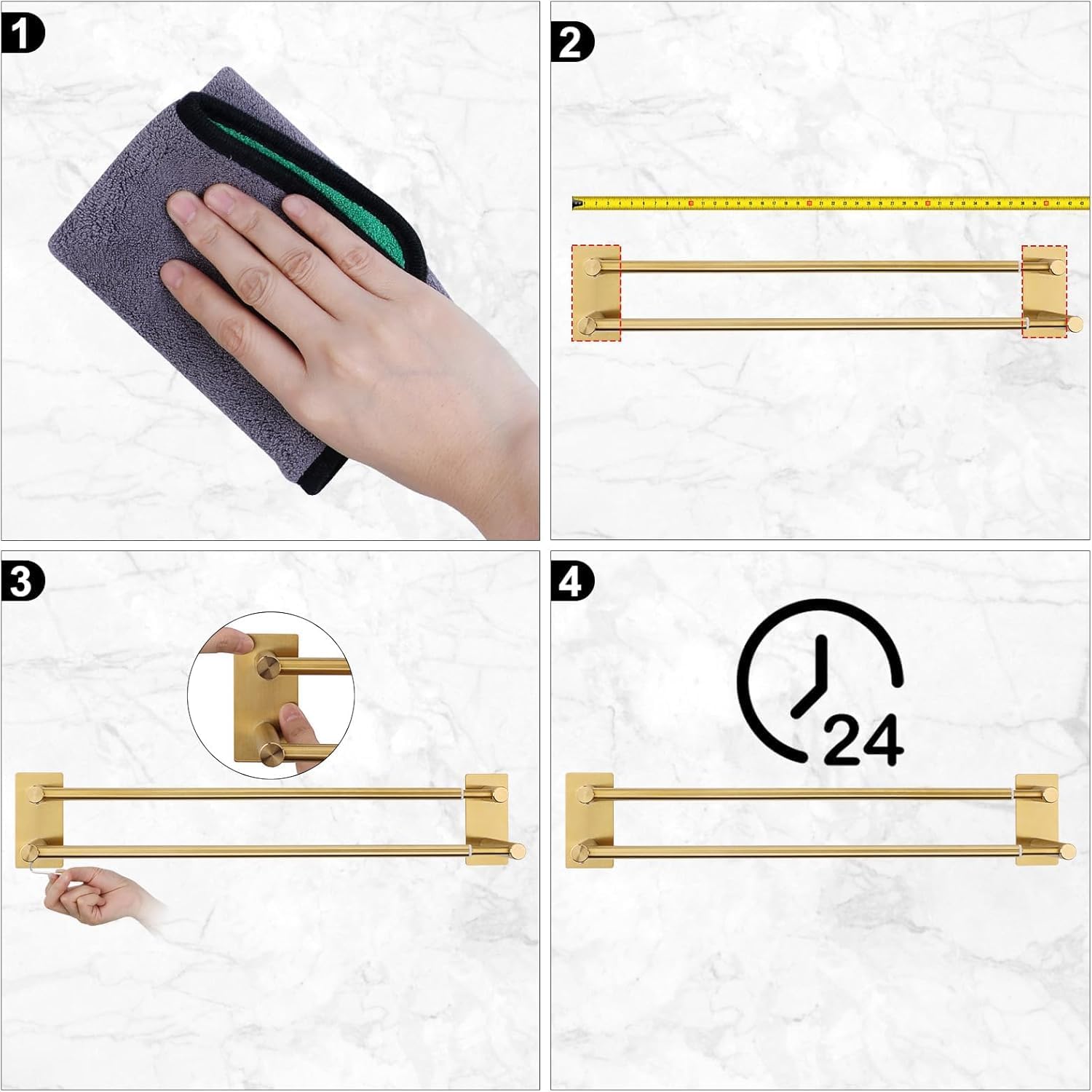 - 【Selbstklebende Installation】Ohne Bohren, Sie müssen nur die Schutzfolie abziehen, den selbstklebenden Handtuchhalter an die Wandoberfläche kleben und fest andrücken. die maximale Belastung beträgt 5 kg.